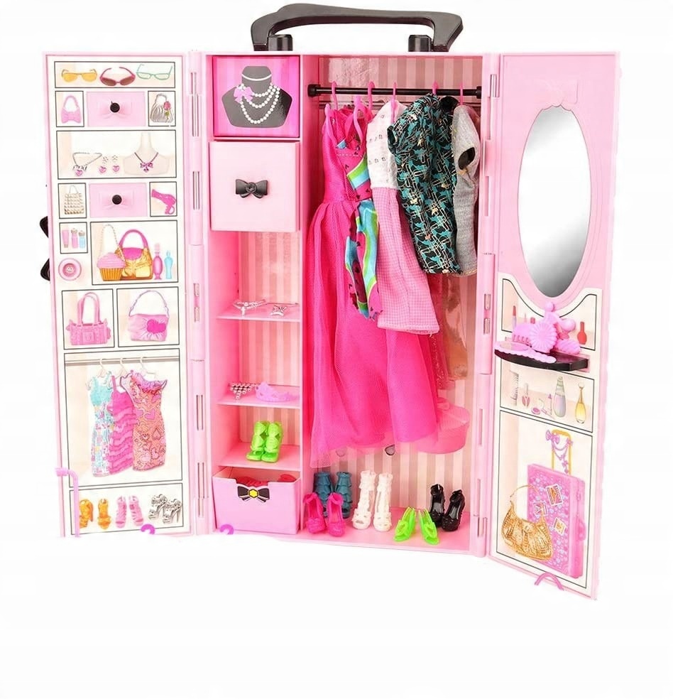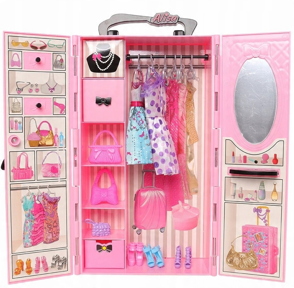 Комплект «Кукольный шкаф и гардероб» — это богато укомплектованный комплект, который станет прекрасным подарком девочке. кто любит играть в куклы и одежду.