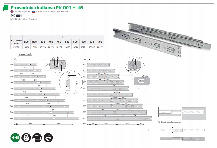 Шарикопідшипникові направляючі ящиків 700 мм ATM