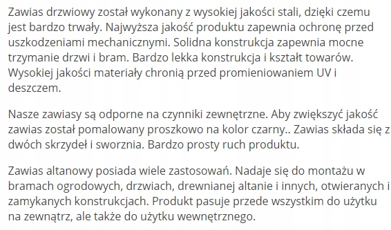 Изделие матового черного цвета с порошковым покрытием, что делает петлю устойчивой к погодным условиям. Изготовлен из листового металла толщиной 2,8 мм. Диаметр крепежных отверстий 5 мм.
