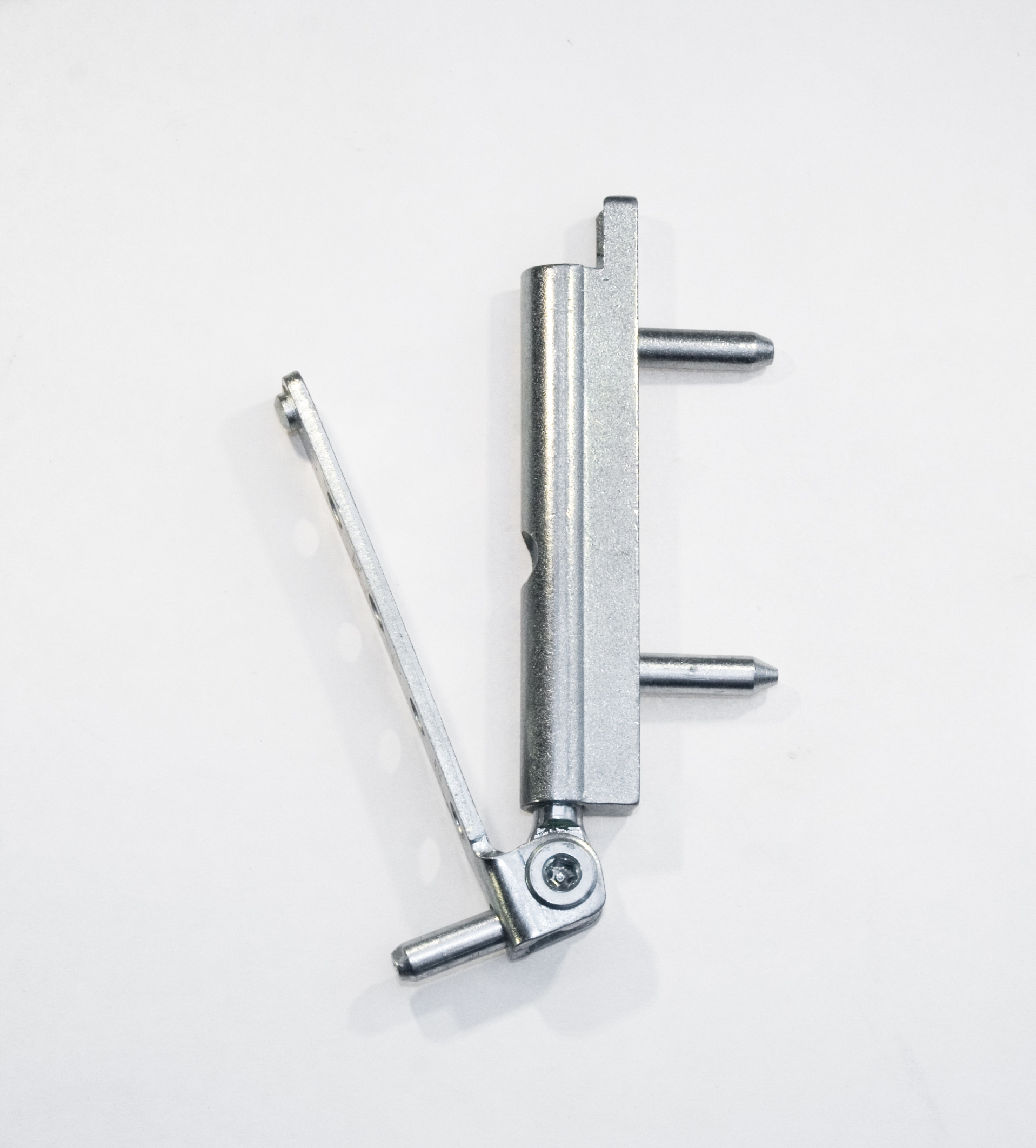 Описание: петля изготовлена из оцинкованного металла. Это нижняя оконная петля. Нижняя часть петли прикручивается к оконной раме четырьмя винтами, а верхняя часть петли прикручивается к створке окна двумя винтами. Дополнительно в нижней части петли имеются 2 штифта (нижний большой и верхний маленький), определяющие положение петли и предотвращающие ее опускание. В верхней части петли также имеются 2 штифта, которые определяют положение петли и предотвращают провисание створки. Этот тип петель чаще всего используется в окнах ПВХ. Петля рассчитана на створку весом до 100 кг. Петля позволяет регулировать окно по горизонтали (нижняя часть петли) и вертикали (верхняя часть петли).