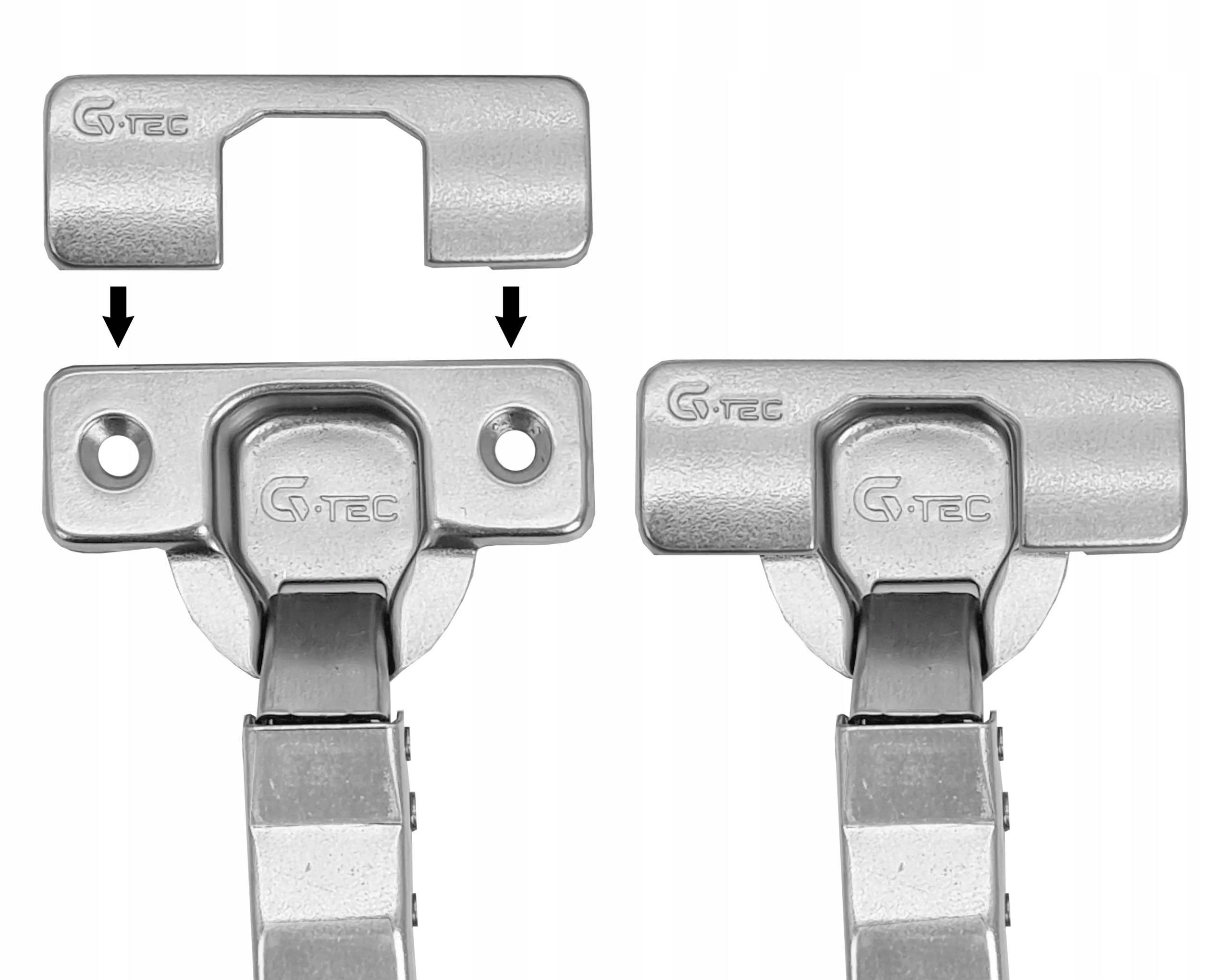 Простая мебельная шарнир применяется на 110 ° молчаливого закрытия RDP. 4 винта G-TEC 50 ПК