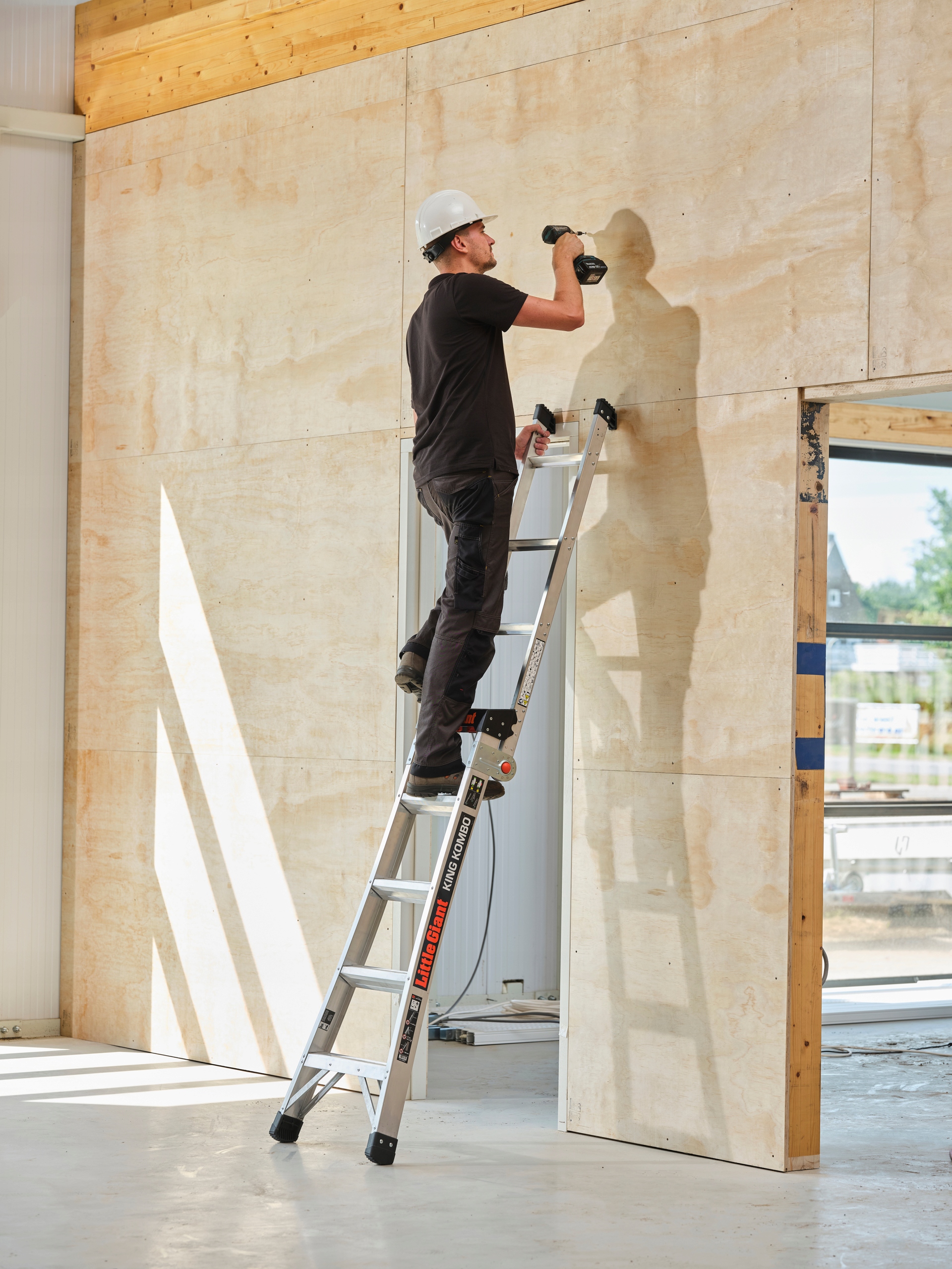 Легко разместите лестницу на любой поверхности благодаря встроенной опоре.