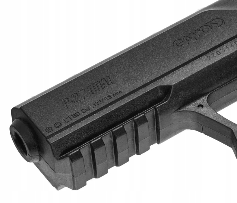 ✅ Отверстие для капсулы CO2 12 г расположено в рукоятке, сразу за отсеком для магазина.