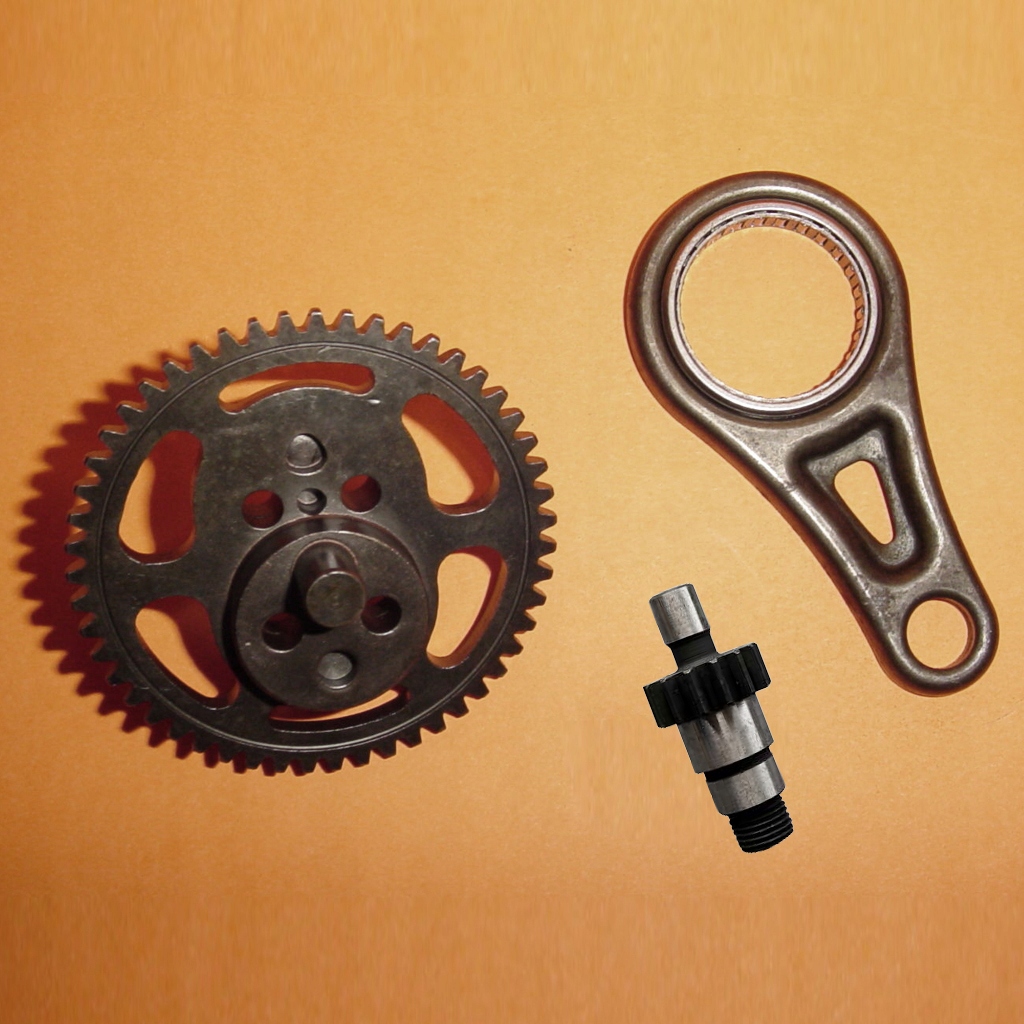 Новые детали, ведущая шестерня, цилиндрическая шестерня и комплект шатунов.