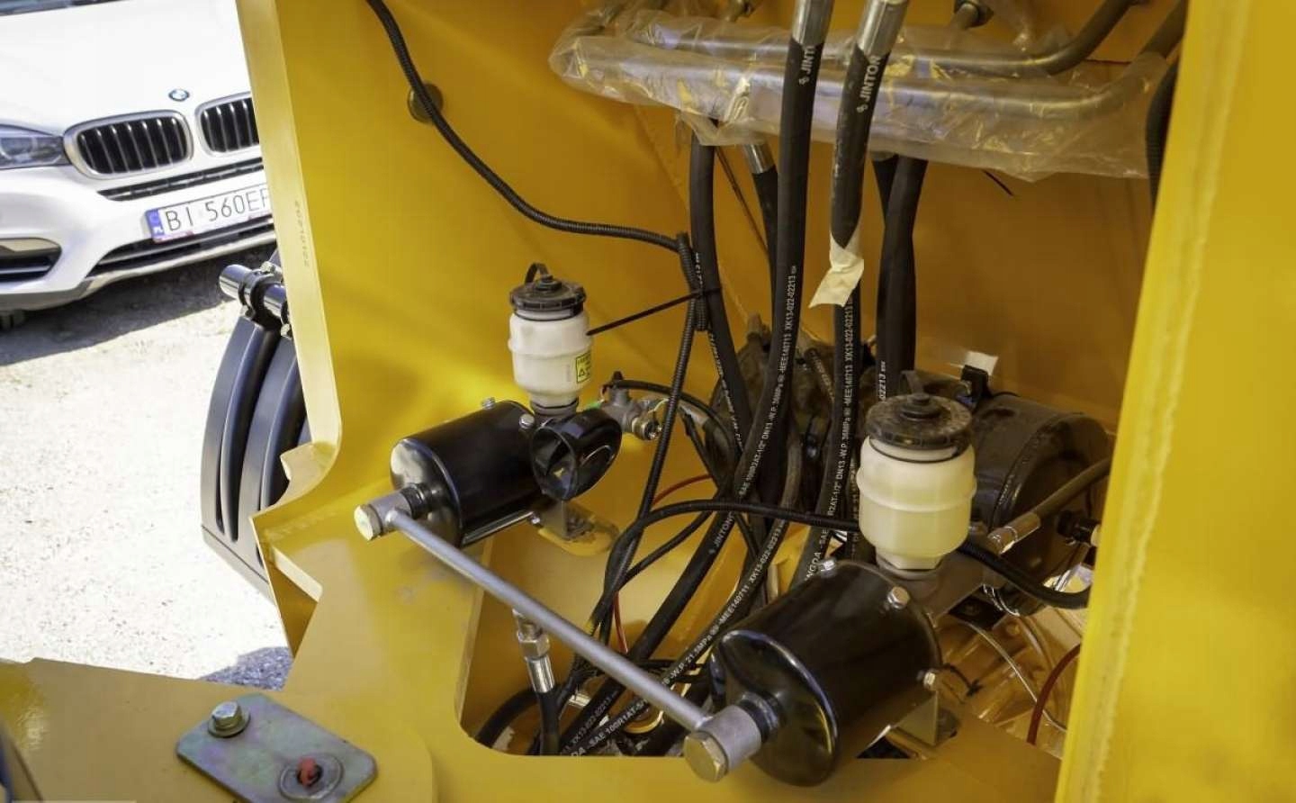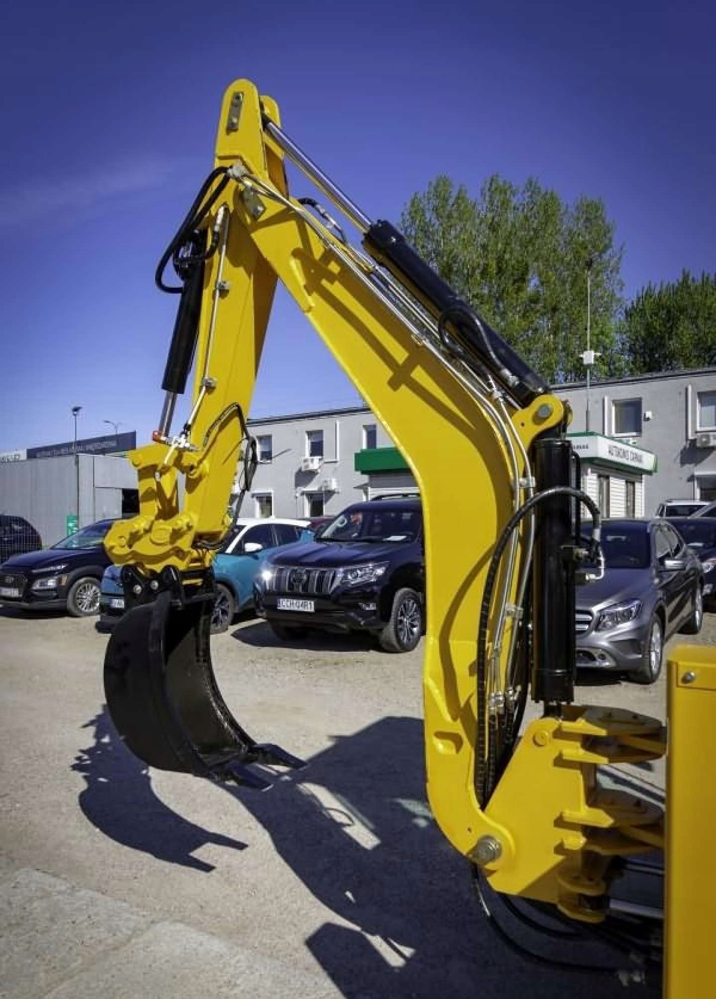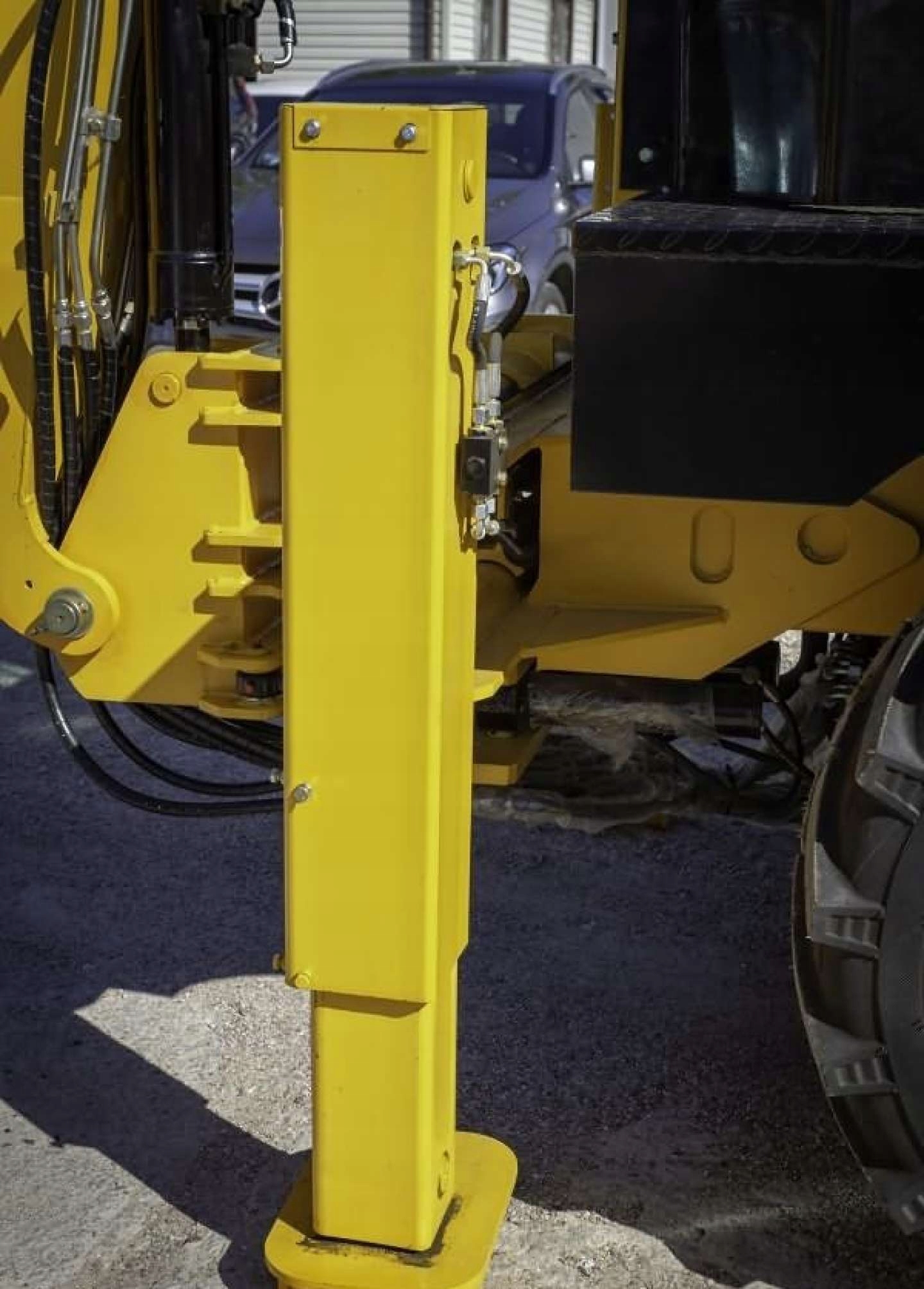 Вы можете выбрать протектор шин и задних стабилизирующих опоров во время копания (буква H или гидравлически складываясь вбок).
