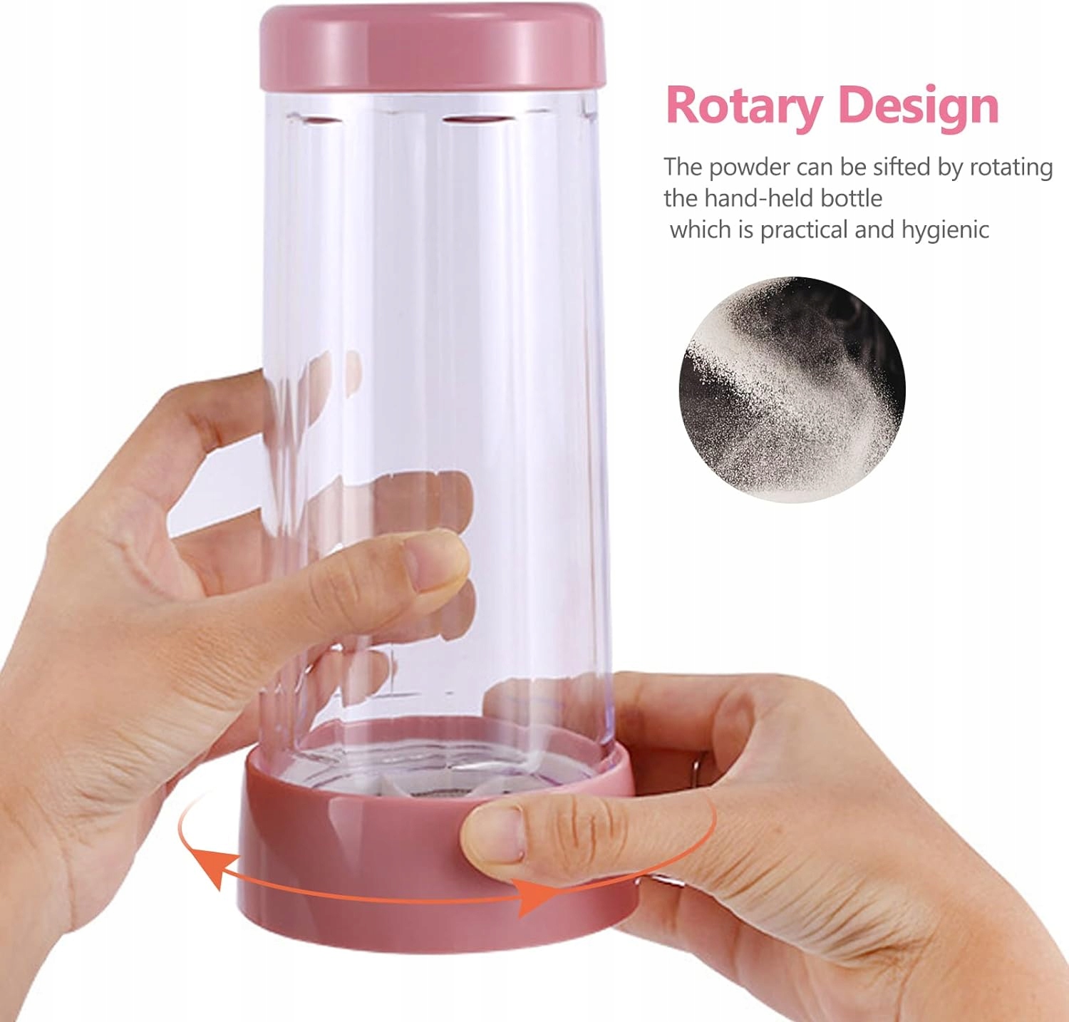 - Легко в использовании: откройте верхнюю крышку роторного сита, залейте сахарную пудру, закройте крышку, а затем откройте верхнюю крышку. Удерживайте нижнюю часть дополнительного сита и скрутите корпус кружки, чтобы создать порошок.