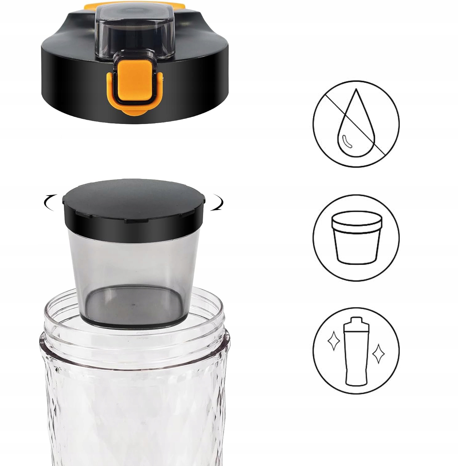 - Крышка шейкера изготовлена из тритана, на 100 % не содержащего BPA, и имеет завинчивающуюся конструкцию, предотвращающую утечку.