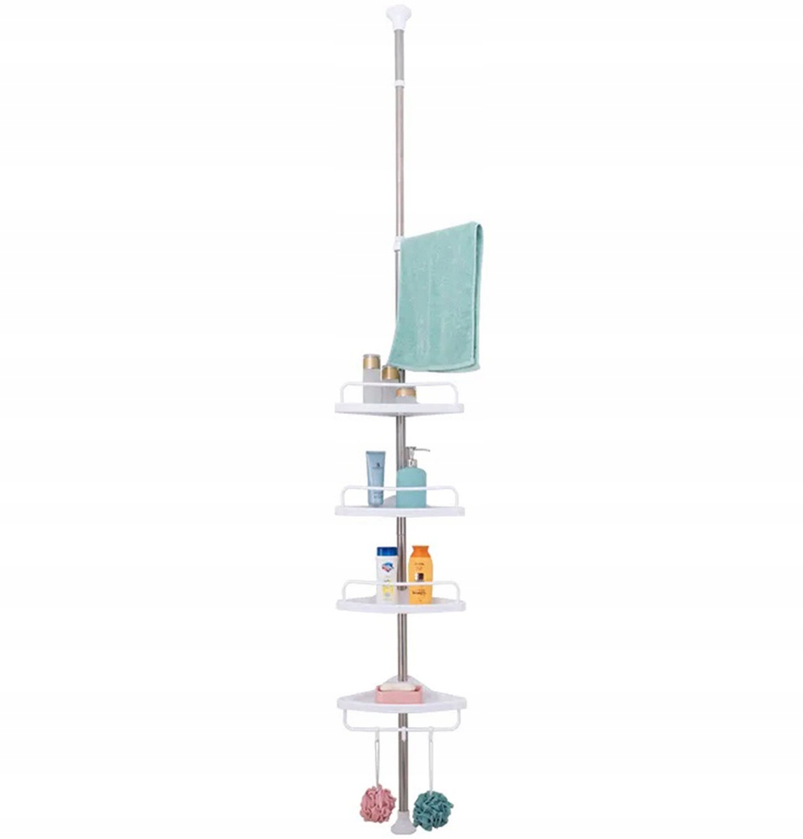 Преимущества: h2> ✅ Использует угловое пространство: на полке идеально используется пространство в углу ванной комнаты, которое часто остается неиспользованным. H2> ✅ Большая емкость: четыре треугольные полки предоставляют много места для хранения косметики, полотенец, шампуней и другой утвари для ванной комнаты. h2> ✅ Регулировка высоты: полка можно отрегулировать в диапазоне от 85 см до 320 см, так что вы можете отрегулировать его до высоты каждой комнаты. В стенах это может быть прикреплено через несколько минут.