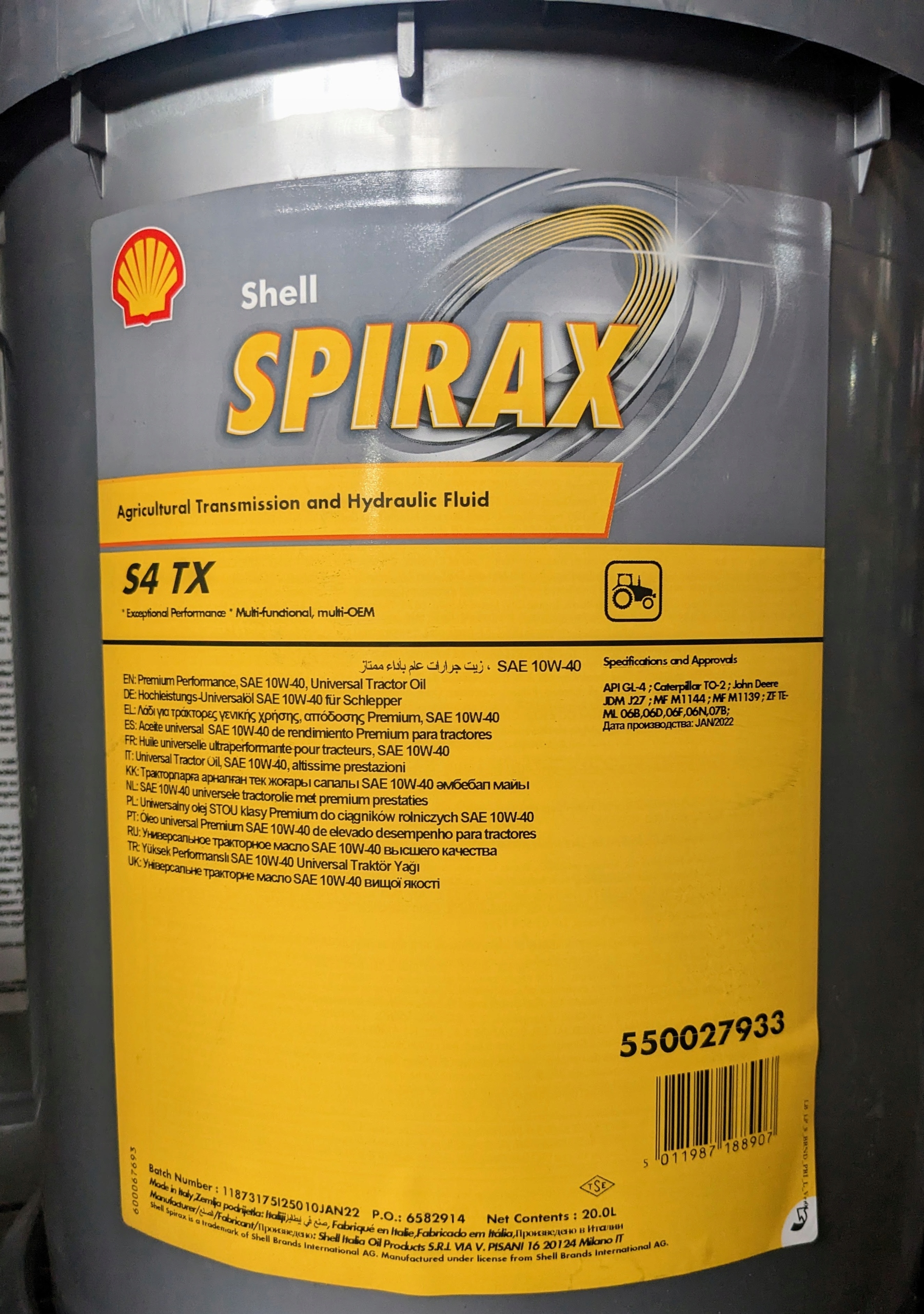 - Оригинальный каталожный номер: SPIRAX S4 TX 10W40 20L