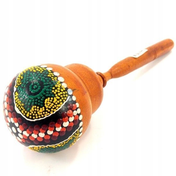 Маракасы, сделанные и расписанные вручную из дерева, с длинной ручкой и восточным красочным узором.