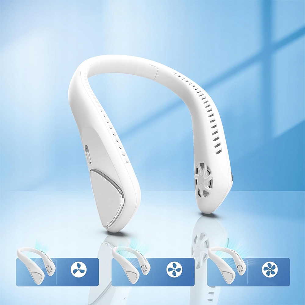 ШЕЙНЫЙ ВЕНТИЛЯТОР ПОРТАТИВНЫЙ БЕЛЫЙ ЛЕГКИЙ USB ДЛЯ СПОРТА И ПУТЕШЕСТВИЙ