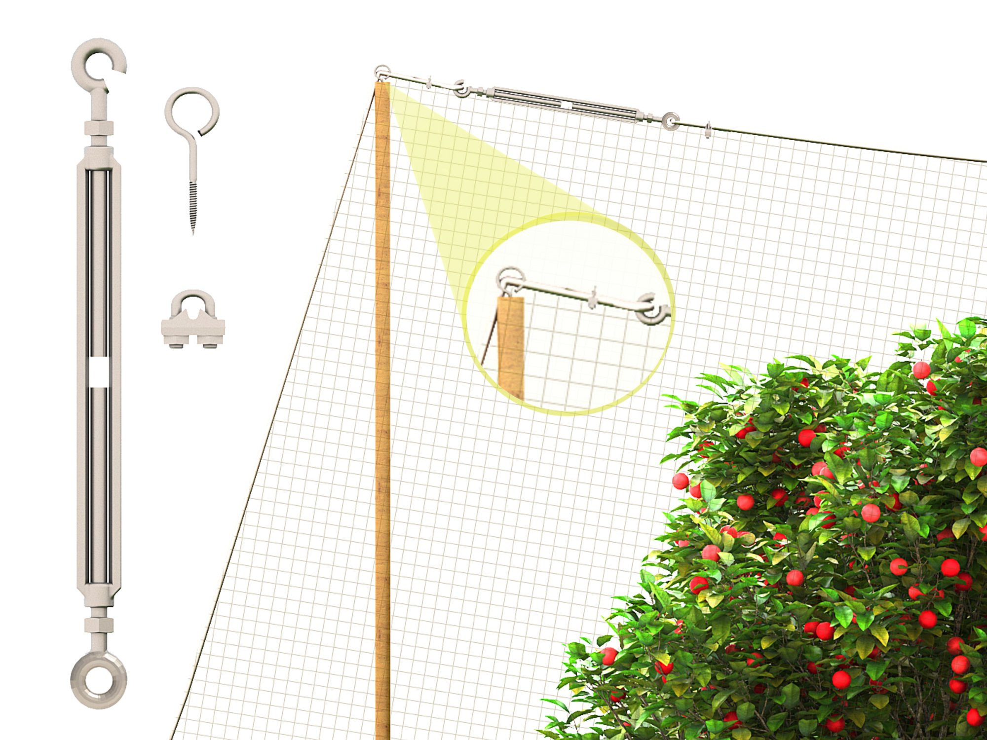 Сетка с самой мелкой ячейкой 15 мм идеально подходит для защиты даже самых маленьких фруктов, таких как черника и вишня или виноградники.