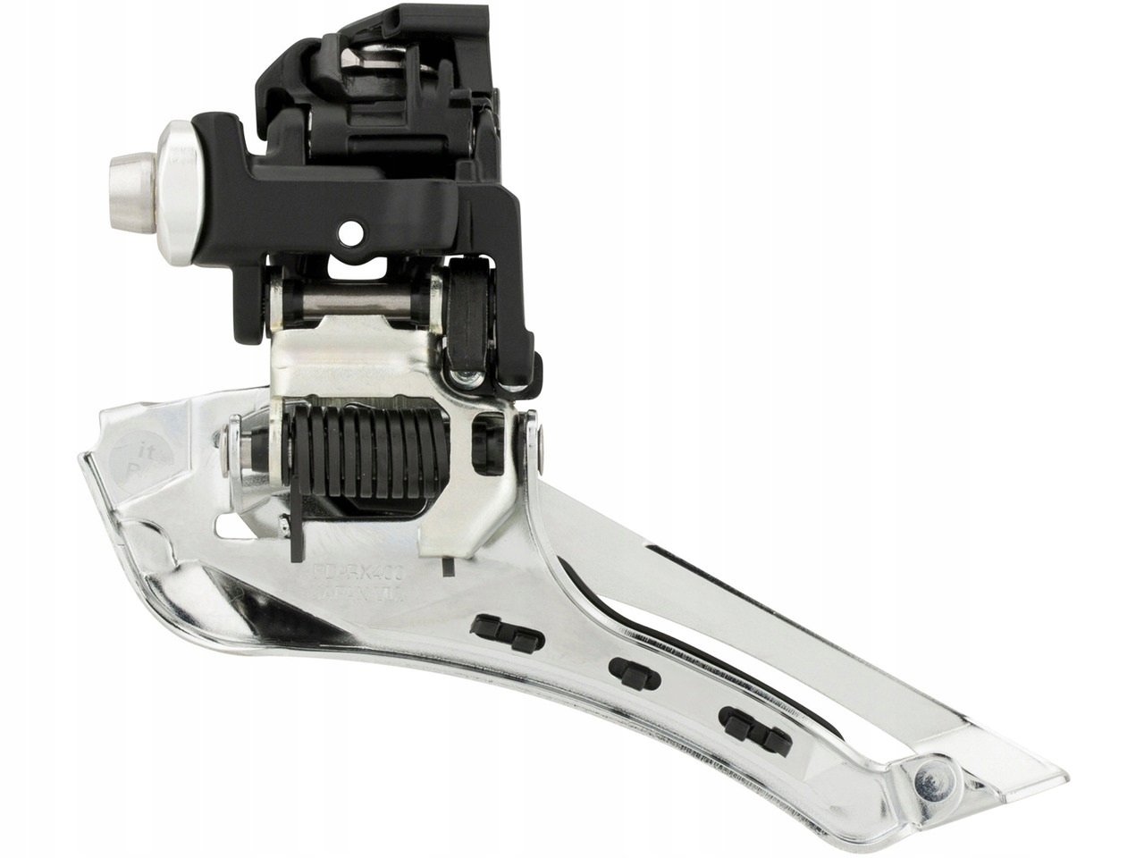 передний переключатель с Shimano GRX RX400 обеспечивает более легкое изменение передних передач и проще установить, используя новую структуру соединительного элемента и и и Интегрированная корректировка пробирки шнура. Он имеет цепную линию, перемещенную снаружи на 2,5 мм, что увеличивает расстояние от шины во время движения в разнообразной области. Фронт