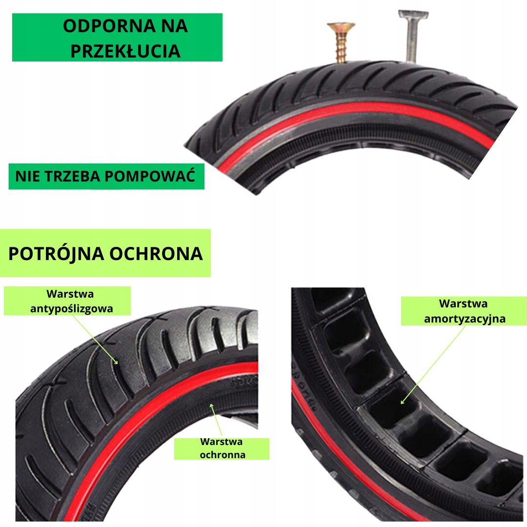Шина имеет отверстия, что повышает комфорт езды по сравнению с традиционными цельнолитыми шинами — улучшенная амортизация.