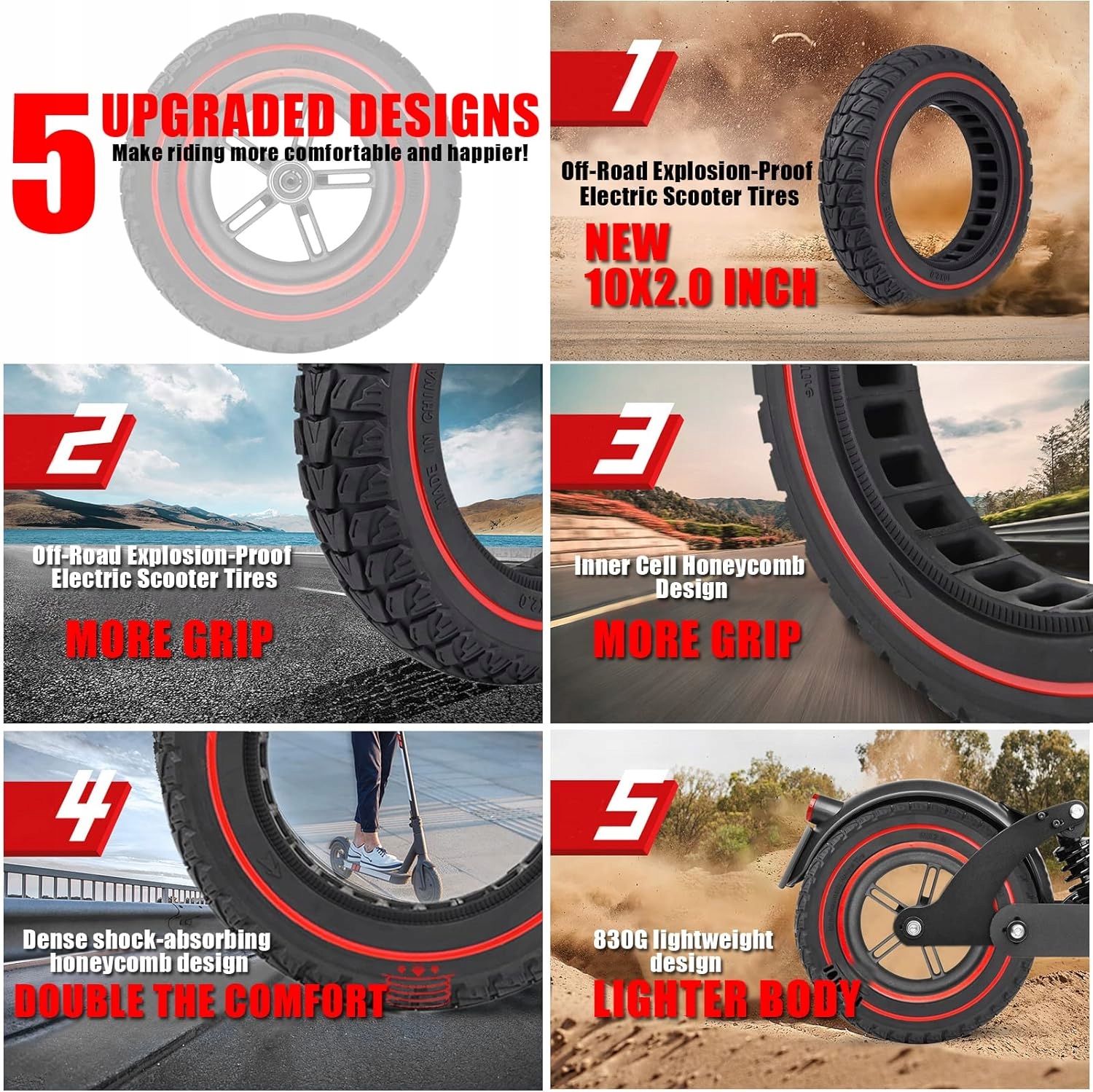 - 【Полное обновление】 Шины для самоката 10 x 2,0, новые шины для самоката такого диаметра 10 дюймов, они лучше подходят для электросамокатов, а ширина протектора шире, уменьшенные неровности обеспечивают комфорт, установка проще для начинающих монтажников.