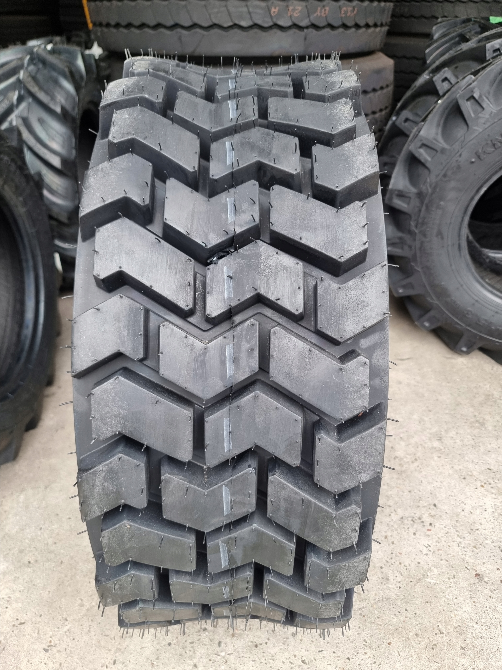 Промышленное tire устойчиво к строительству. Шина характеризуется повышенной сопротивлением механическим повреждениям благодаря использованию армированной диагональной структуры и использованием специальной резиновой смеси, которая предотвращает вытягивание протектора.