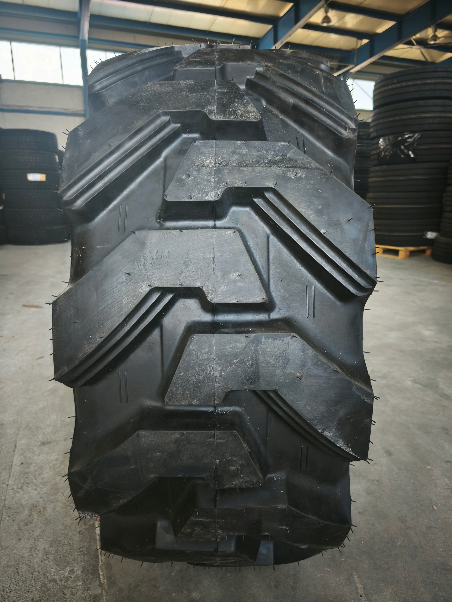 Прочный протектор обеспечивает превосходные самостоятельные свойства, высокий сцепление и длительный срок службы шины на твердых поверхностях. Ее прочный телу нейлонового шнура был разработан для превосходной ударной стойкости и высокой устойчивости к проколам. Идеальная шина для сложных условий труда на почве и высоте, на ферме, строительстве или других промышленных применениях.