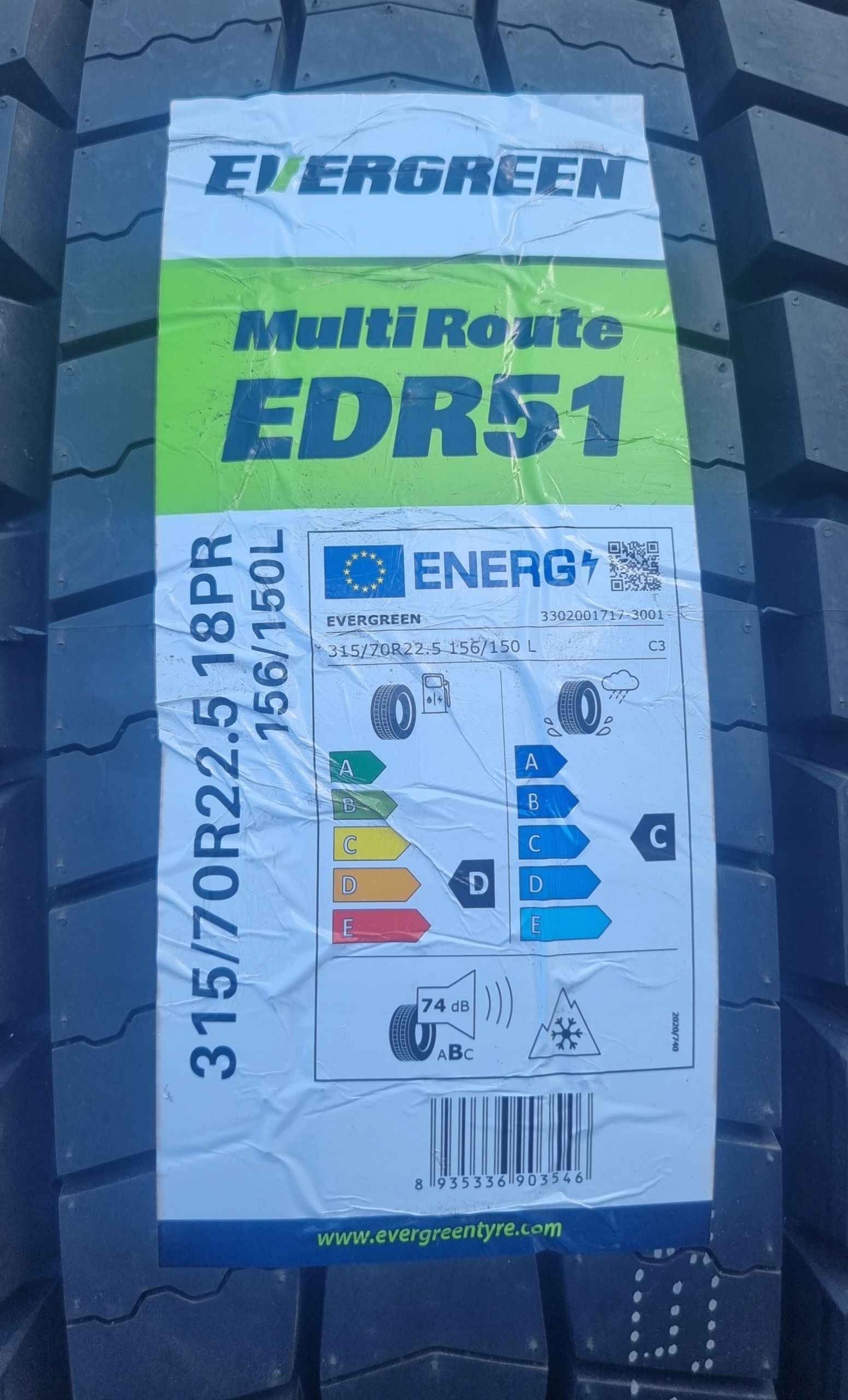 Продаются 4 НОВЫЕ шины ПРЕМИУМ, размер 315/70R22.5 EVERGREEN EDR51. Разработано для ведущей оси.