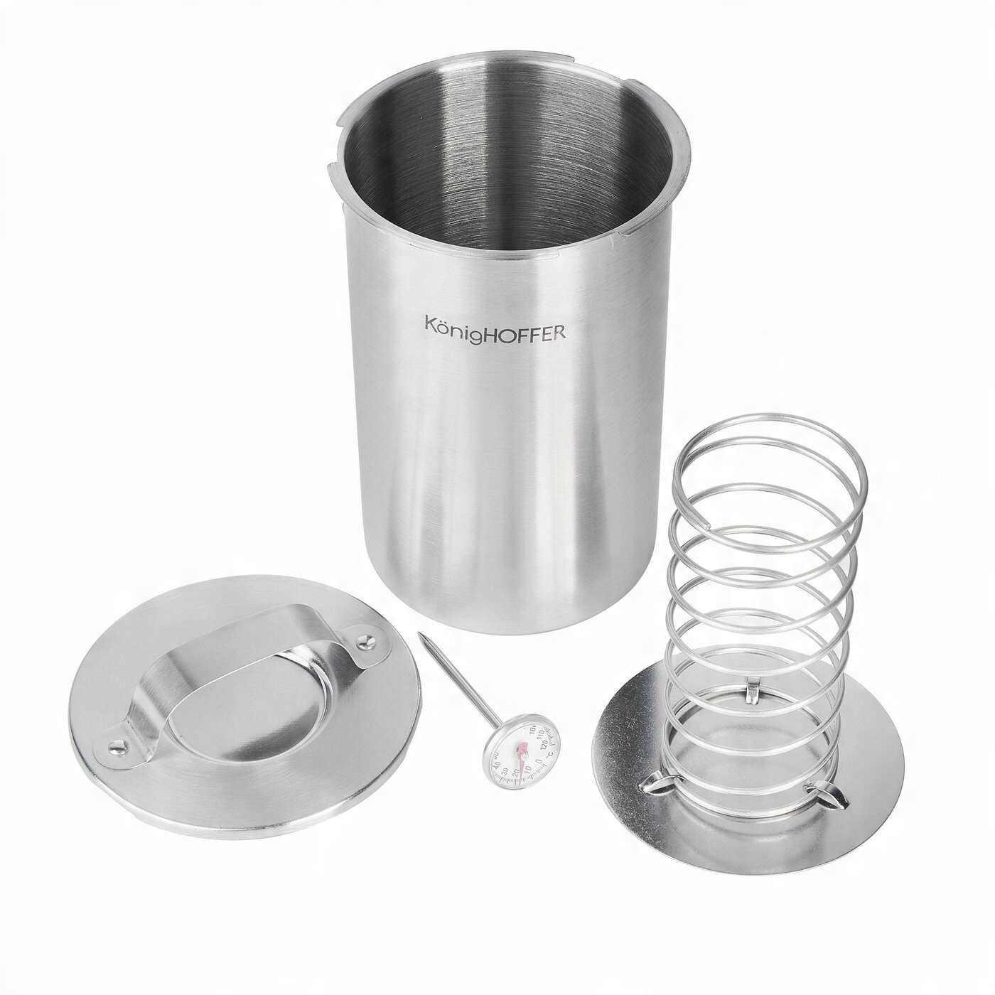 В комплект входит стеклянная крышка с вентиляционным отверстием, стальное сито с ручкой.