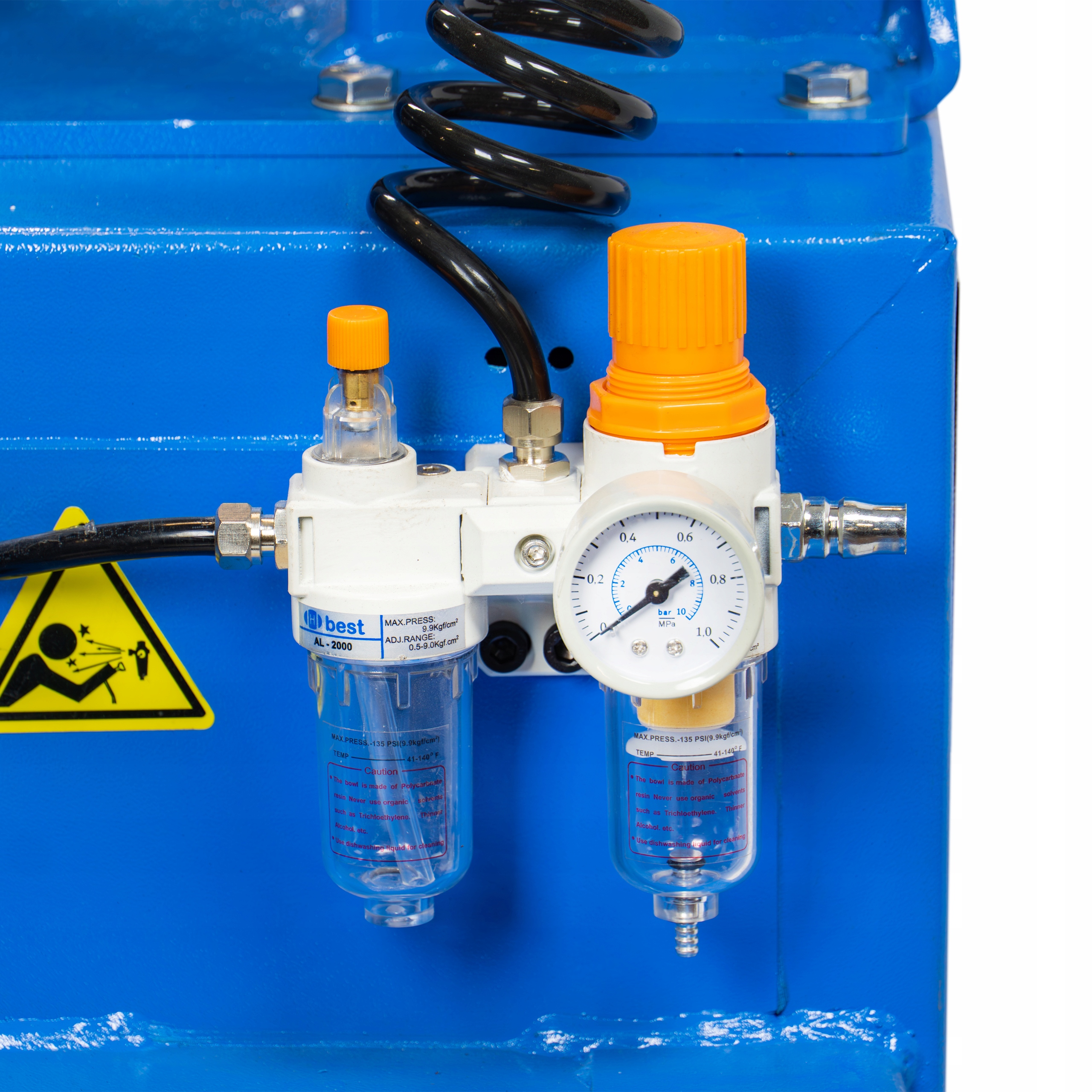 Дополнительно оснащен дегидратором, масленкой с пистолетом для накачки шин и педали управления.