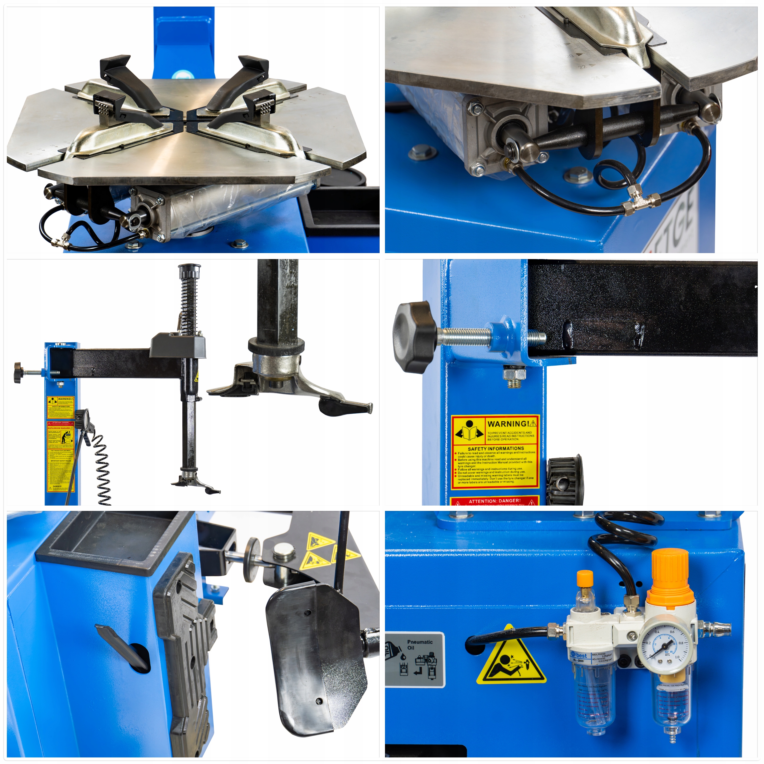- Прочный монтажный стол: Этот шиномонтажный станок оснащен прочным монтажным столом, который обеспечивает устойчивость во время процесса монтажа шин. Благодаря прочной конструкции стол готов к работе в различных условиях.