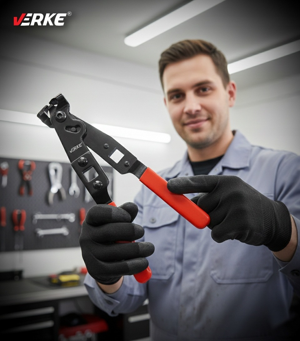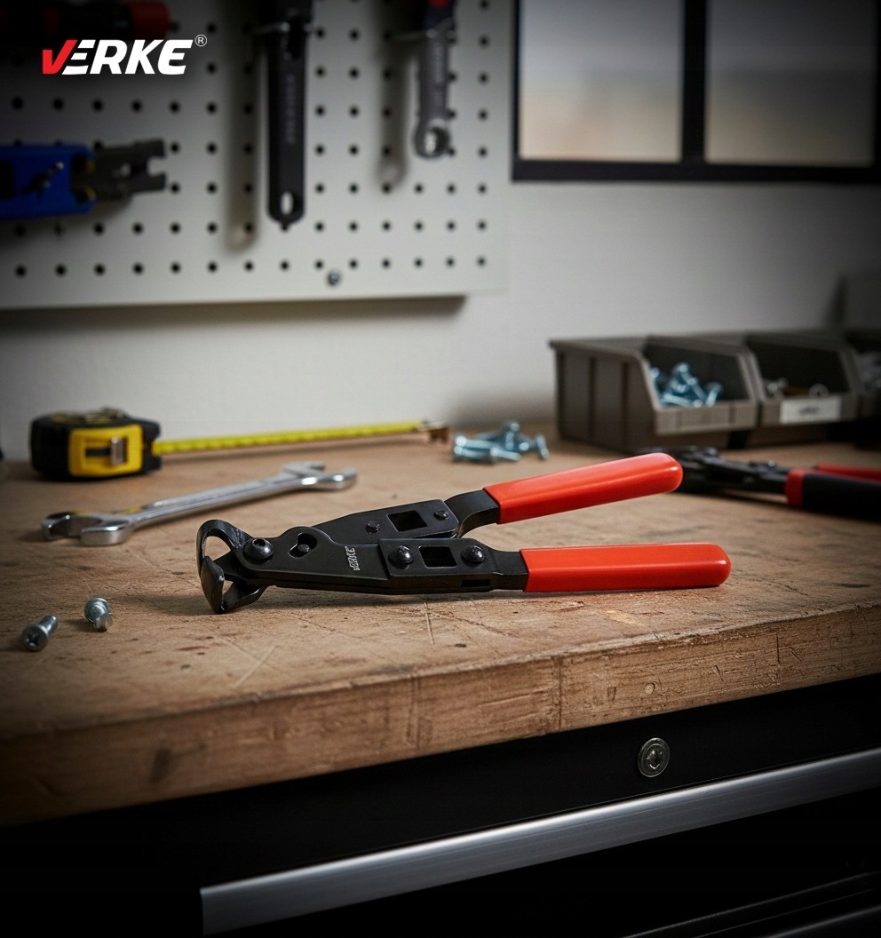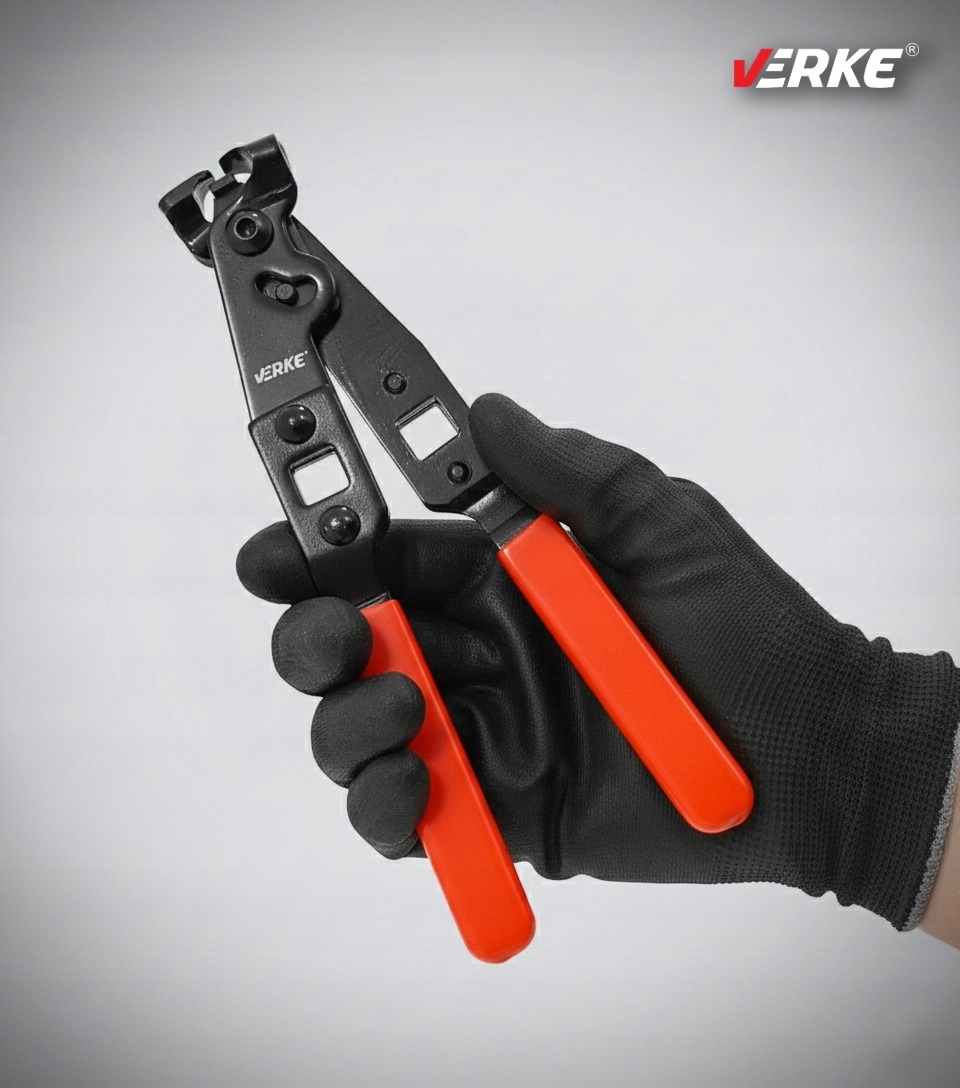 Плоскогубцы VERKE — специализированный инструмент, предназначенный для установки хомутов крышек шарниров, широко используемых в автомеханике. Благодаря своей точной конструкции они позволяют надежно закреплять поясные стяжки, а также обжимать замковые замки с помощью встроенного пресса, что гарантирует прочное и прочное соединение.