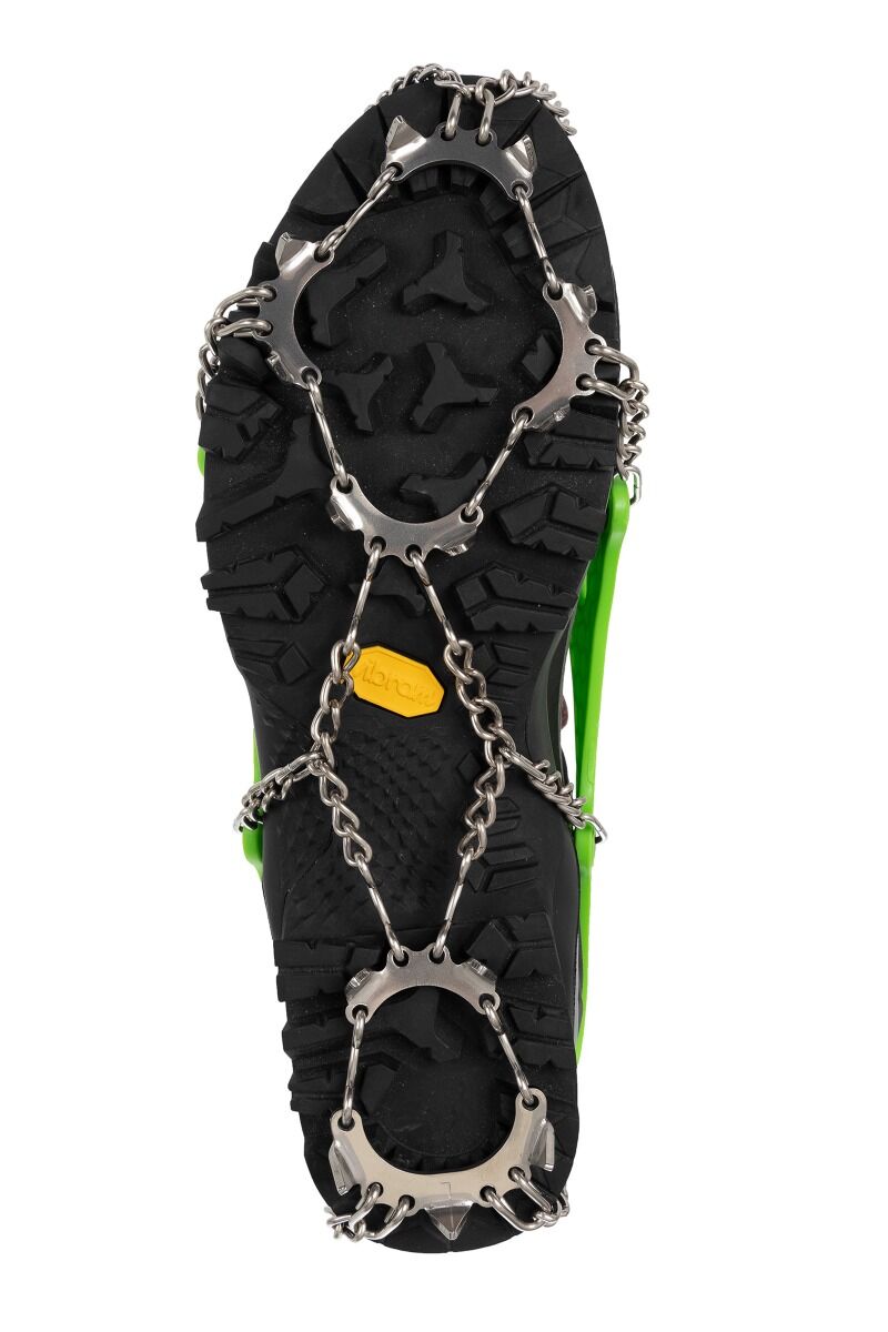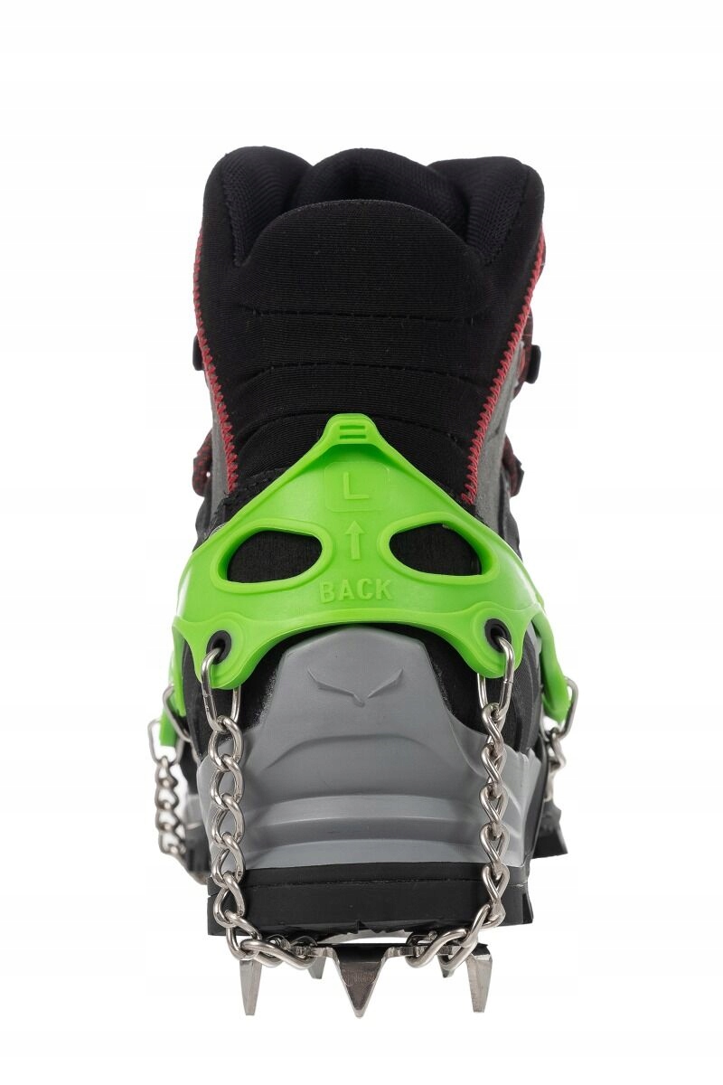 Грипсы Pro Traxion Lite имеют 13 стальных зубцов, расположенных в передней и задней частях подошвы. Их больше на фронте. Восемь из них удерживают вас независимо от того, идете ли вы вверх или вниз по склону. В отличие от кошек, походные кошки подходят для более мягкой походной обуви. Их можно использовать даже в городе, когда пресловутое стекло покрывает тротуар. Люльки марки ВИ.6+ оснащены небольшим чехлом на молнии.