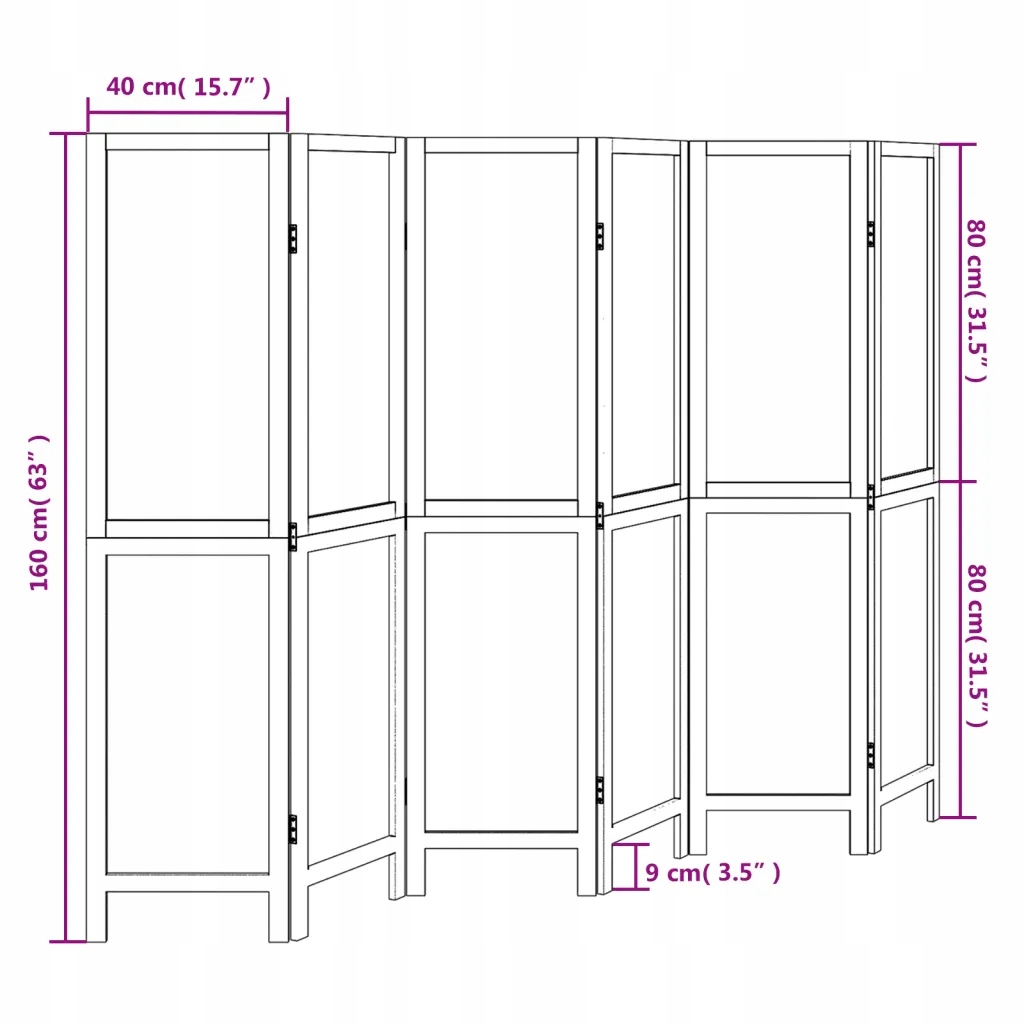 Ширма для вітальні, 6 панелей, біла, масив дерева