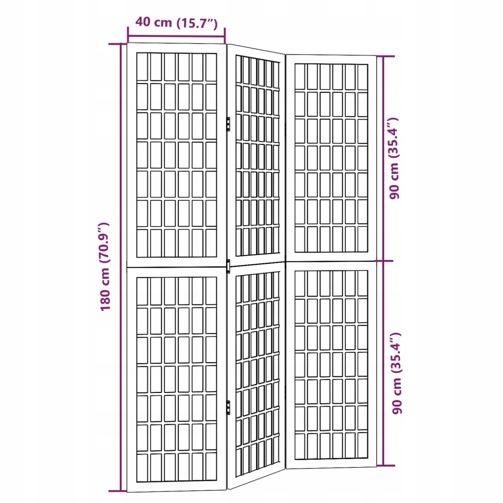 Комнатная ширма из дерева павловния, черная, 105-110 x 180 см, 3 панели