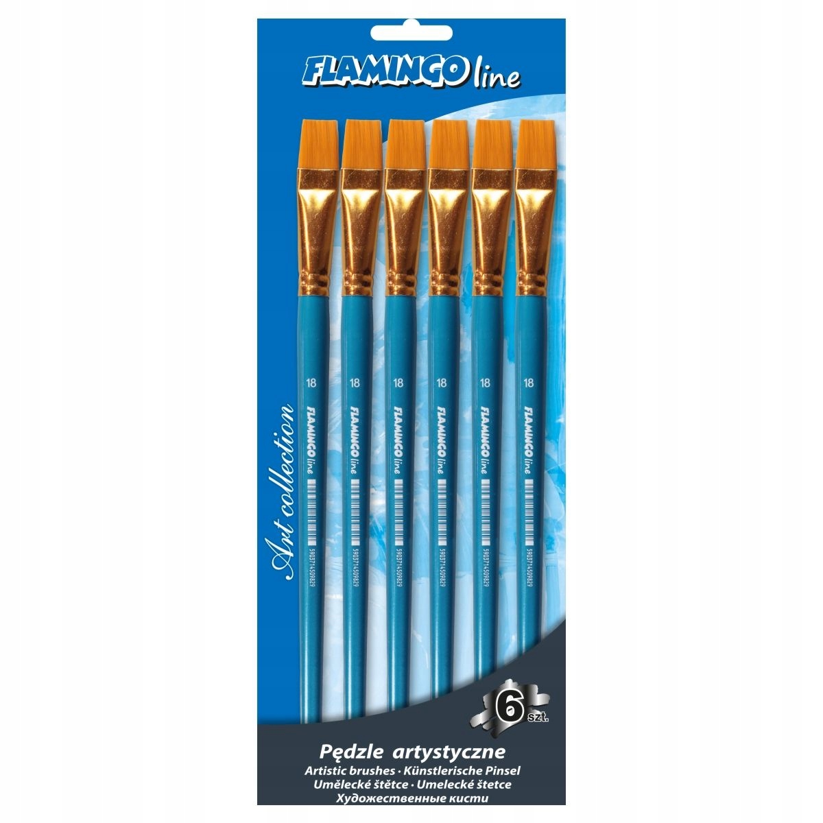 Кисти художественные с синтетической щетиной. Прочные деревянные ручки синего цвета с маркировкой толщины кисти. Они идеально подходят для занятий рисованием в школе и дома. Тип наконечника: плоский. НЕТ. 18. Упаковано в блистер по 6 штук.