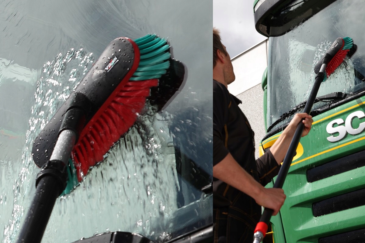 Щетка для мойки автомобилей среднего размера, из мягкого полиэстера, с разделенной щетиной и подачей воды.