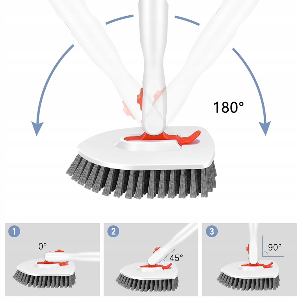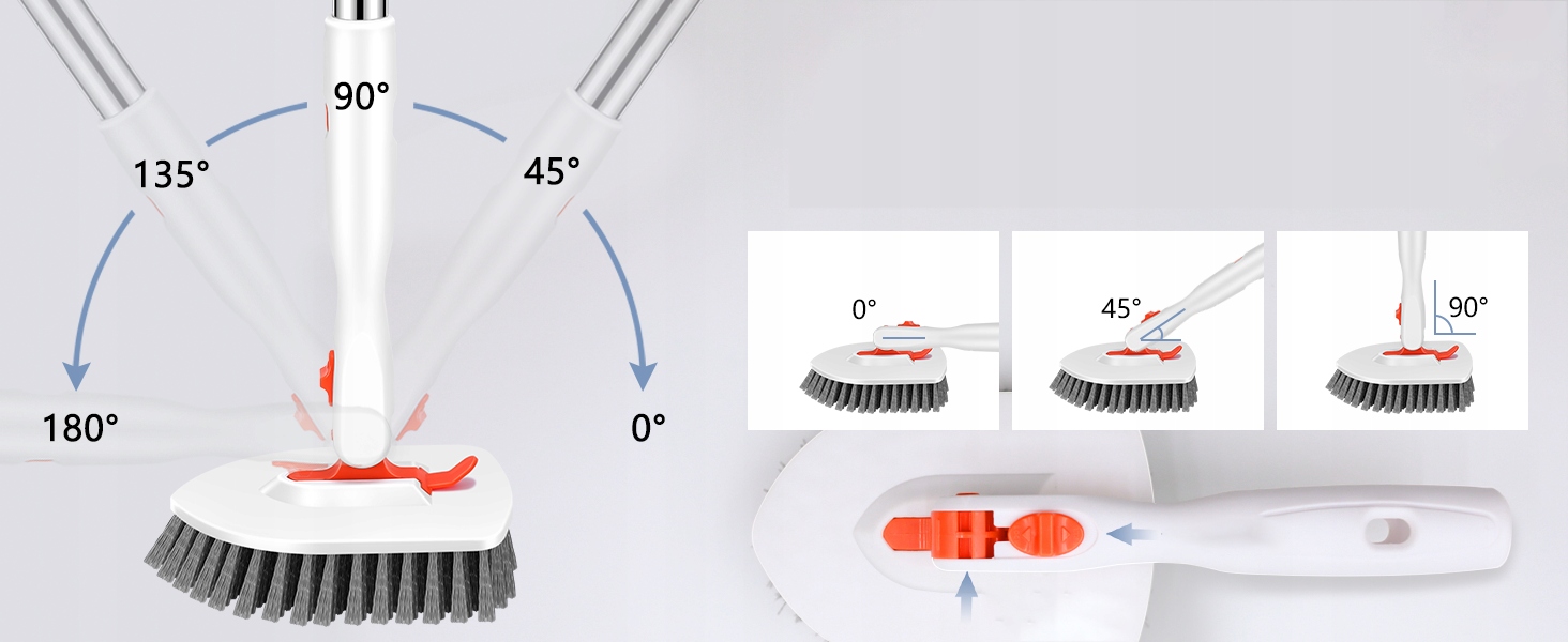 ✔ 【【Очистка под многими углами】 Улучшенная структура вращающейся головки щетки, вращающаяся головка может быть блокирована под 3 углами (45 °, 90 °, 180 °), чтобы избежать встряхивания влево и вправо во время чистки, чтобы соответствовать различным уборкам.