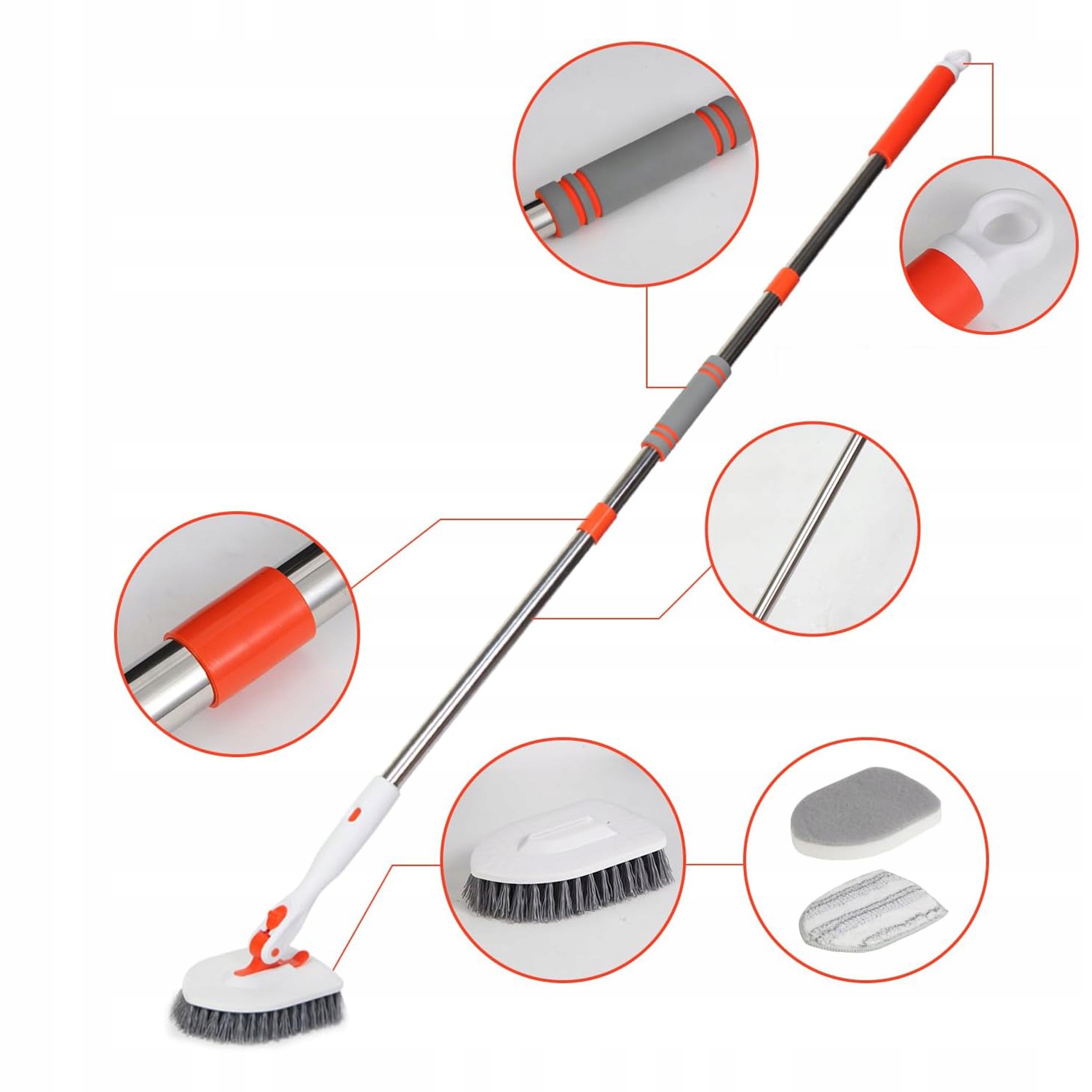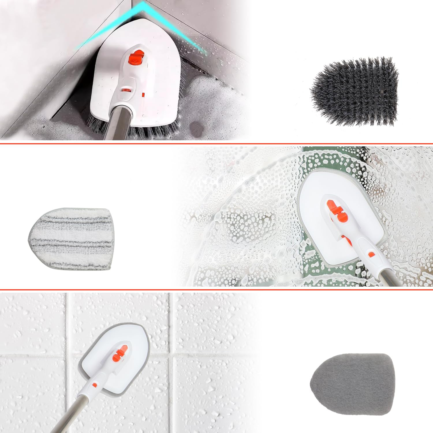 ✔ 【3-в-1 Отключенная головка кисти】 содержит три различных высококачественных чистящих головных головок, чистящих губки и микрофибры. Подходит для полов, ванных комнат, ванн, стен, стекла и большинства домашних заданий.