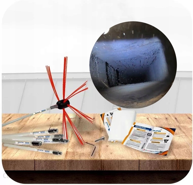 Вращающийся набор для механической чистки дымохода снизу гарантирует, что у вас никогда не возникнет снова воспользоваться помощью трубочиста. Благодаря тому, что элементы набора (щетка с жесткой нейлоновой щетиной, 6 гибких нейлоновых удлинителей, адаптер для дрели с ключом) подключаются к дрели, вы сможете удалить даже самые стойкие загрязнения С советами вы сами раньше не сталкивались. Набор «Тайфун I» создан для удаления легких и умеренных отложений сажи и креозота, которые часто встречаются в дымоходах.