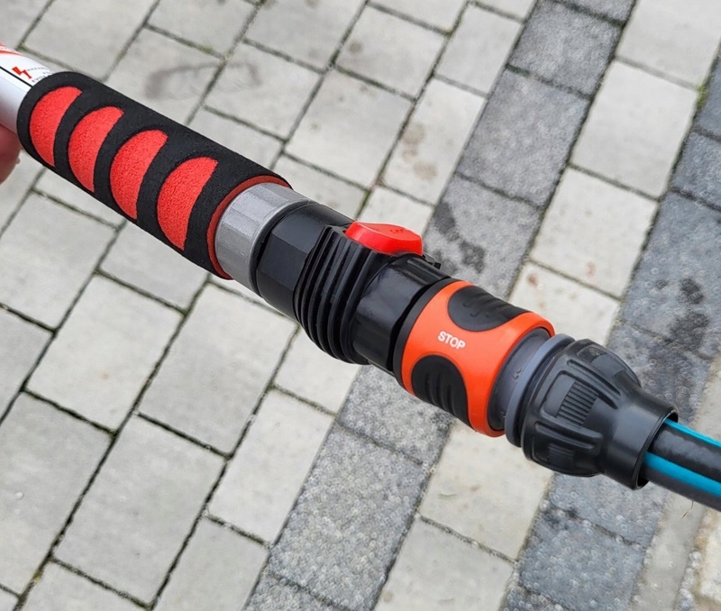 • на ручке имеются пенопластовые ручки, быстроразъемный разъем для подключения водяного шланга (быстродействующий разъем) и клапан протока воды