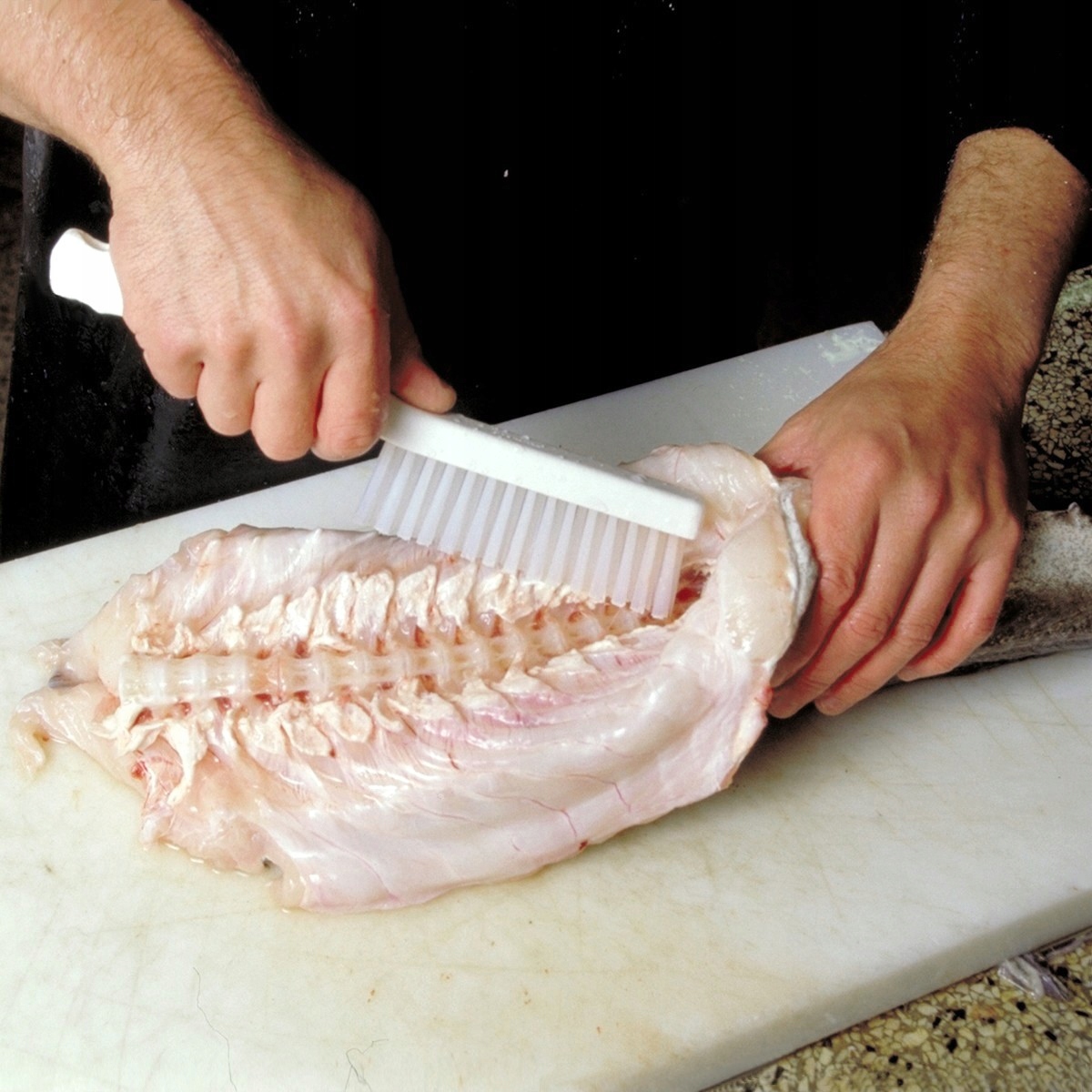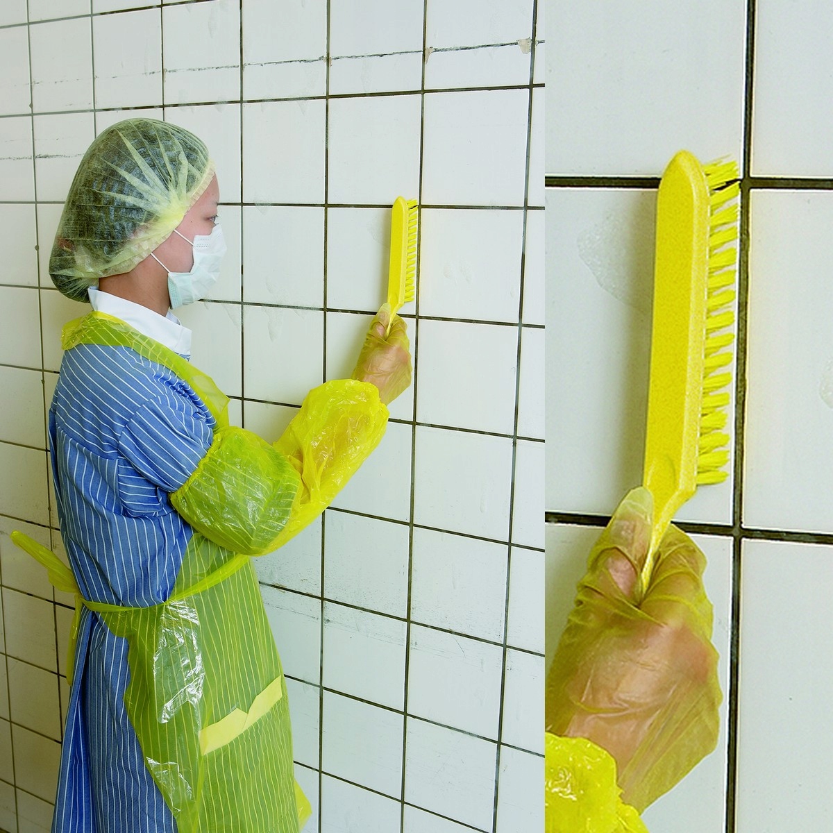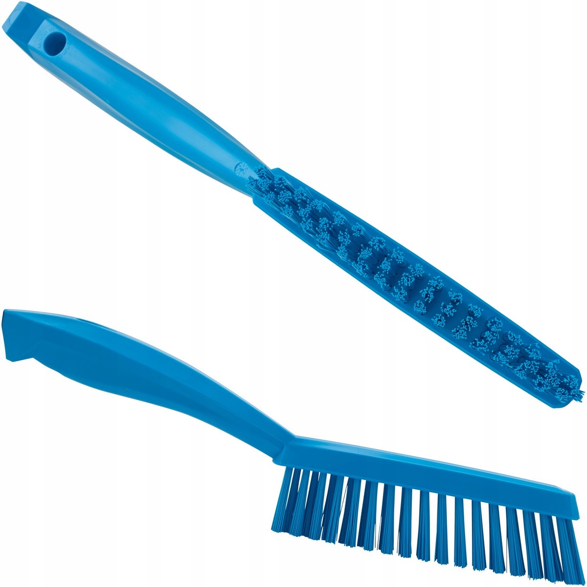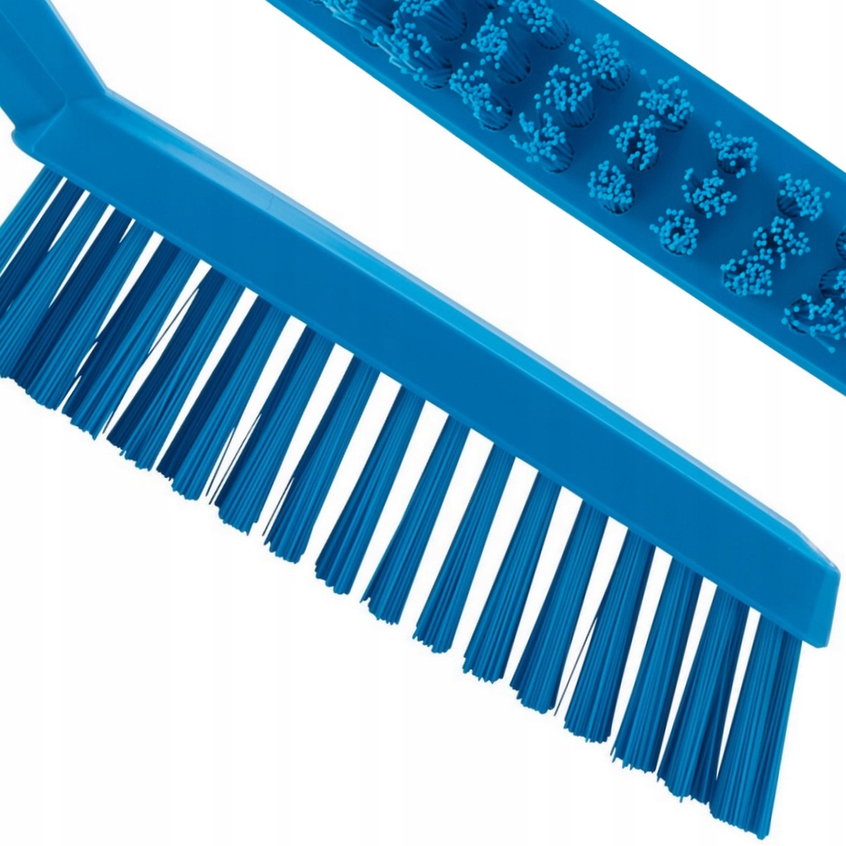 Из полипропилена, армированного нержавеющей сталью, узкая кисть с короткой ручкой и чрезвычайно жесткой щетиной из полиэстера. Предназначен для очистки стойких загрязнений в узких пространствах, например, на конвейерных лентах или резиновых уплотнениях оборудования, может использоваться даже при переработке рыбы.