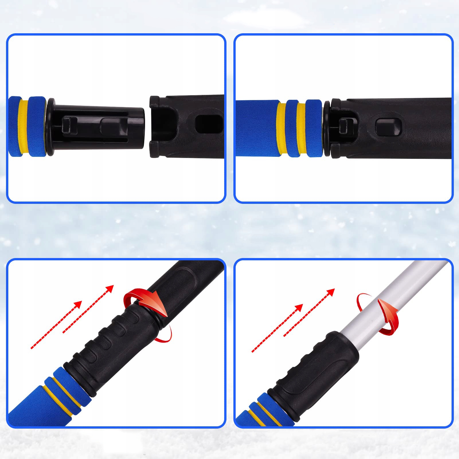 - ⛅ 【Поворотная головка щетки】 Насадка щетки для снега имеет конструкцию, вращающуюся на 360°, что позволяет выполнять различные задачи.