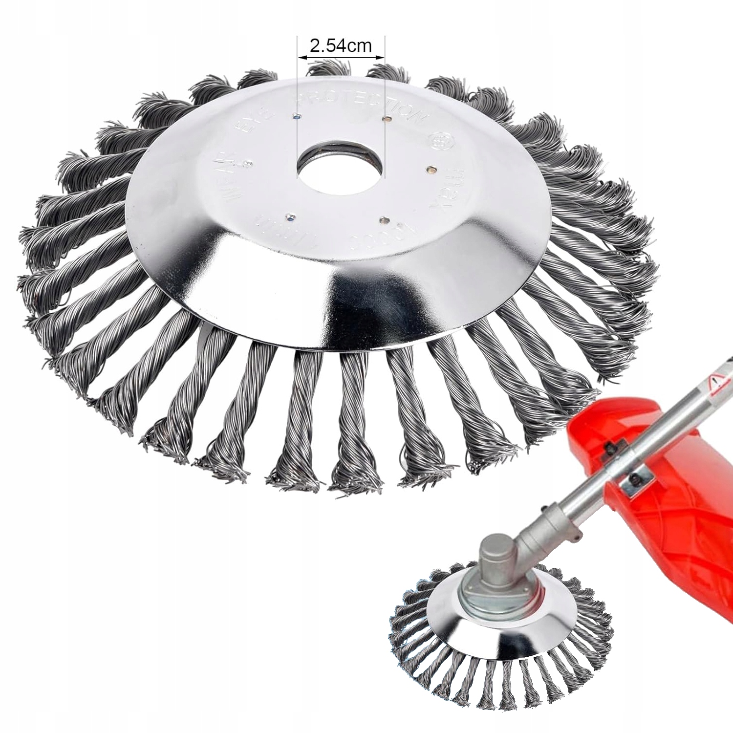 Колесная щетка с витыми спицами изготовлена из двухслойных утолщенных дисков из нержавеющей стали и износостойкой пружинной стальной проволоки толщиной 10 мм, которая отличается прочностью и долговечностью. Стальную проволоку нелегко упасть.