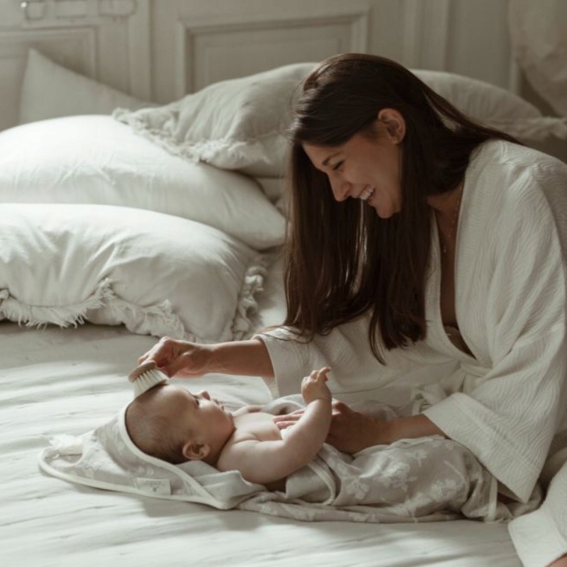 Расческа с натуральной щетиной для шапочки-колыбели идеальна для расчесывания шапочки-колыбели, а также для расчесывания длинных волос вашего ребенка.