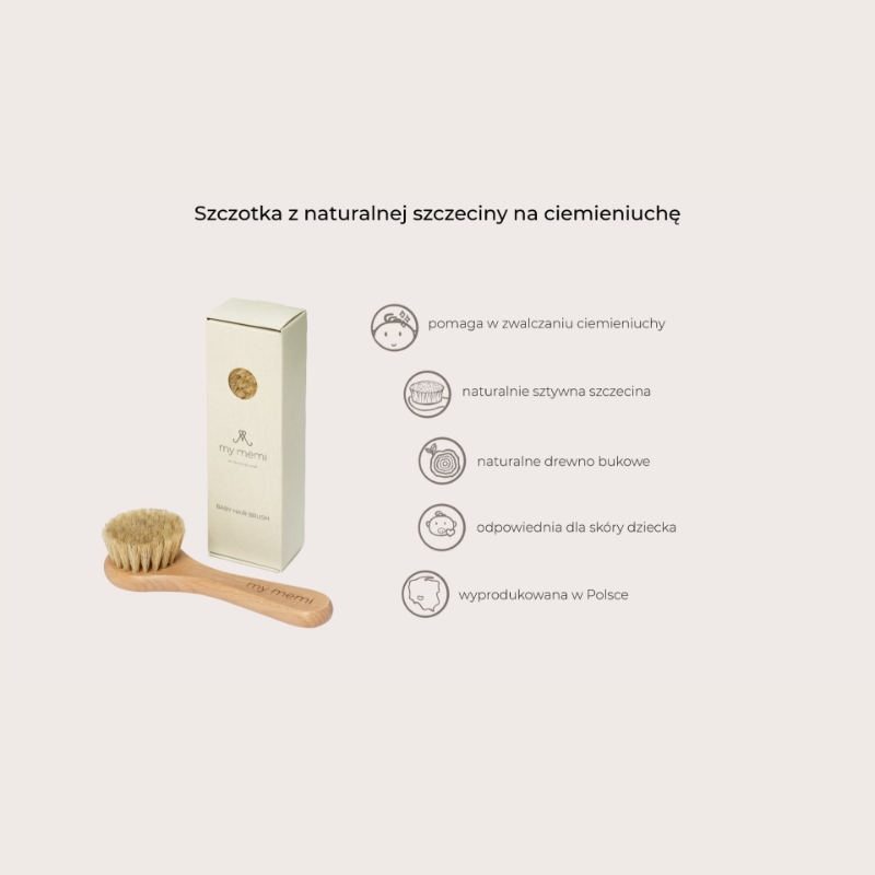 Щетка для колыбели из натуральной щетины — это высококачественная натуральная щетка, изготовленная в Польше из щетины и натурального бука.
