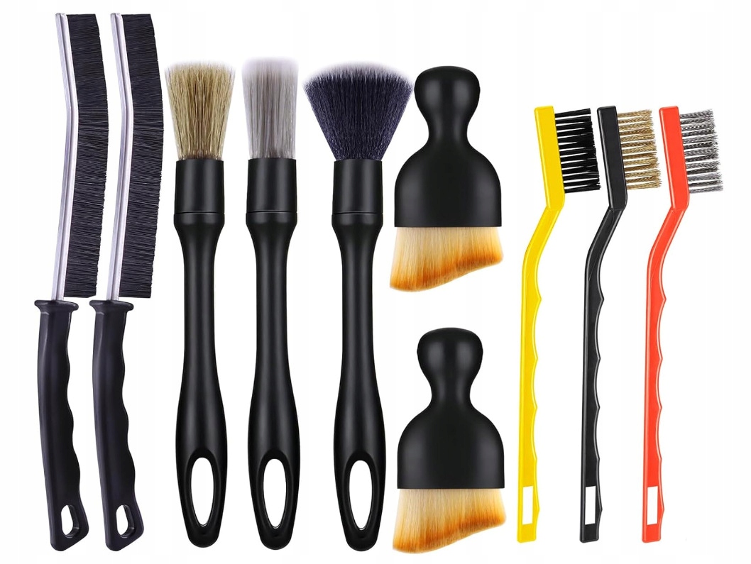 Набор из 10 щеток для детейлинга кабины - идеально подходит для чистки и ухода за салоном автомобиля.