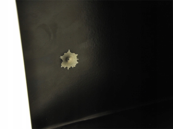 Толщина листа 1,5 мм позволяет стрелять из очень прочных винтовок, даже мощностью до 50 Дж.