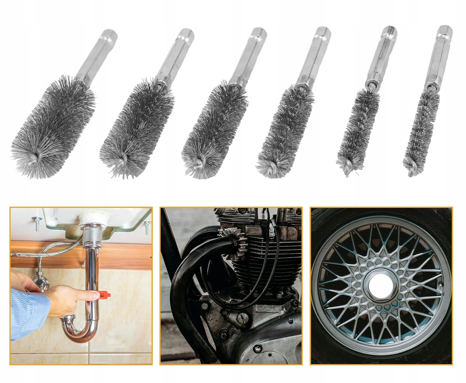 - в том числе диаметром 8 мм, 10 мм, 12 мм, 15 мм, 17 мм и 19 мм; каждая щетка имеет длину 10 см и имеет шестиугольную ручку диаметром 1/4 дюйма, которая крепится к любой дрели или шлифовальной машине (не входит в комплект).