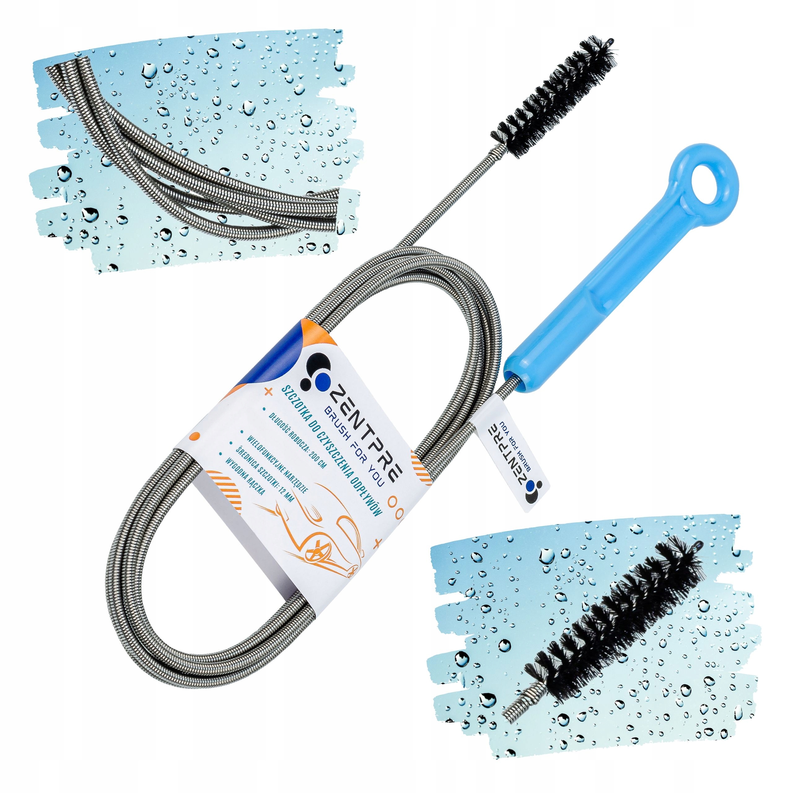 - Длина щетки вместе с пружиной составляет 200 см, что позволяет легко протолкнуть большинство сливных труб.