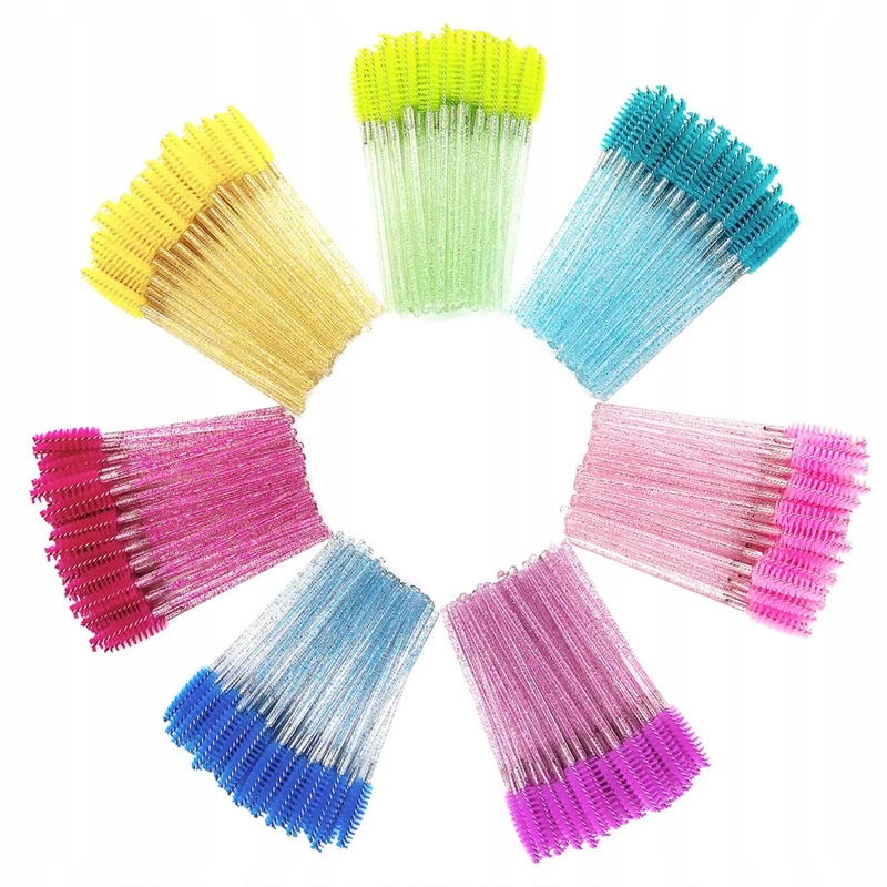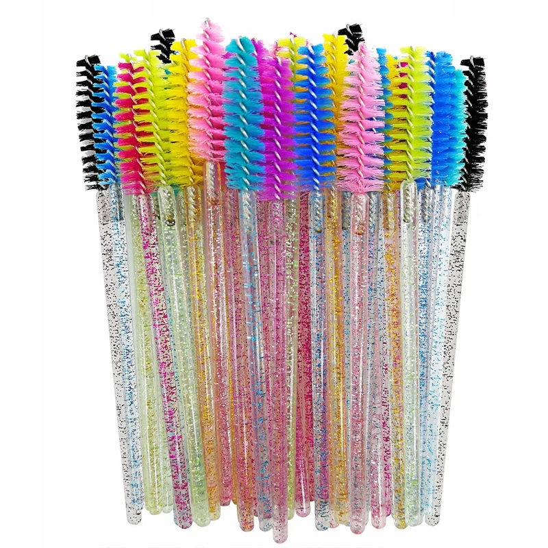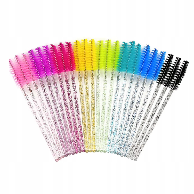Щіточка для вій і брів, спіраль зелена, ручка з блискітками, 50 шт
