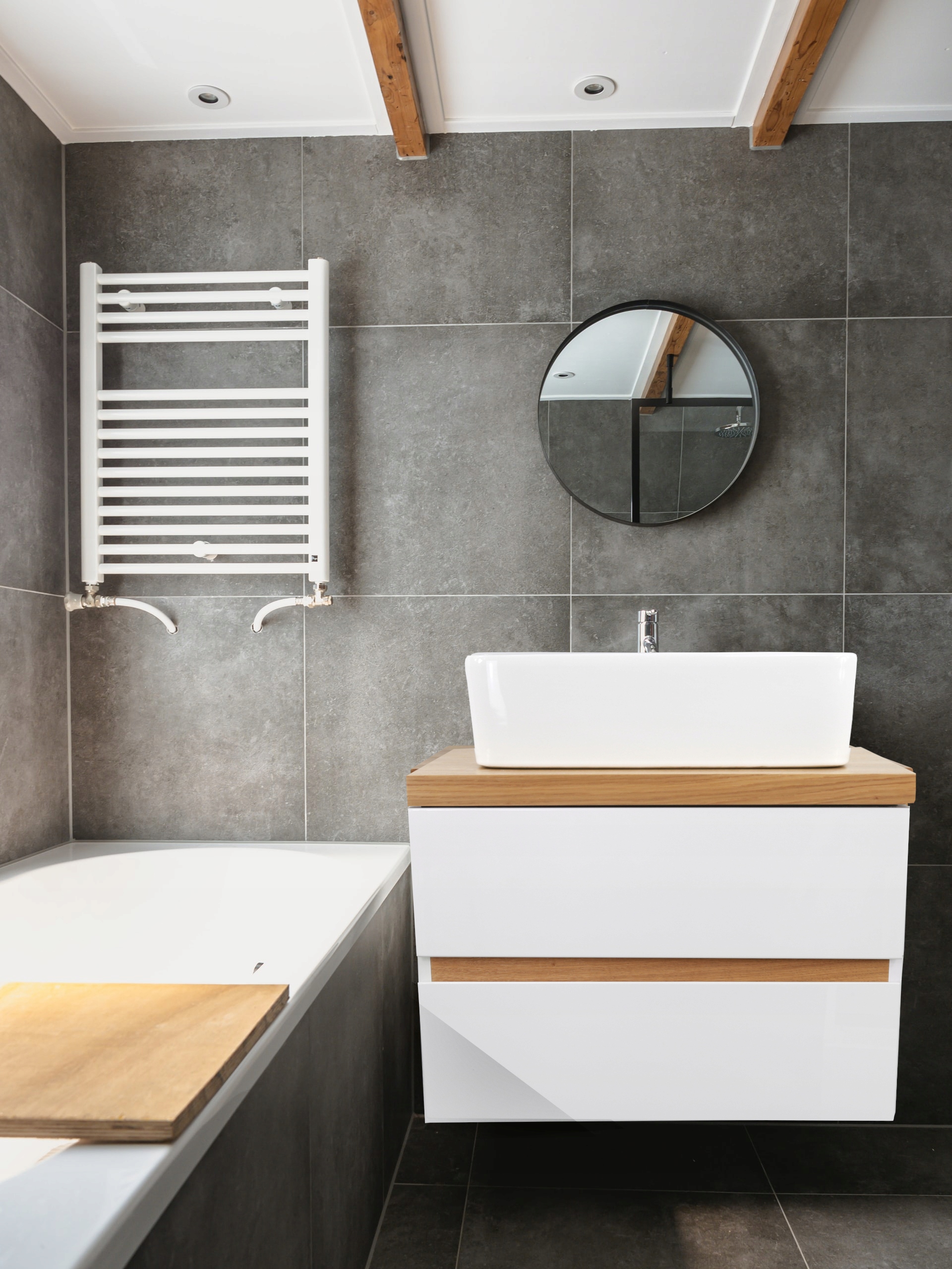 СЛОЖНАЯ подвесная тумба для ванной комнаты под умывальник со столешницей из ДУБА!