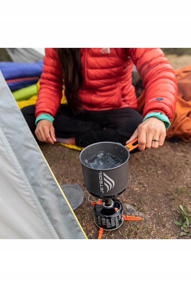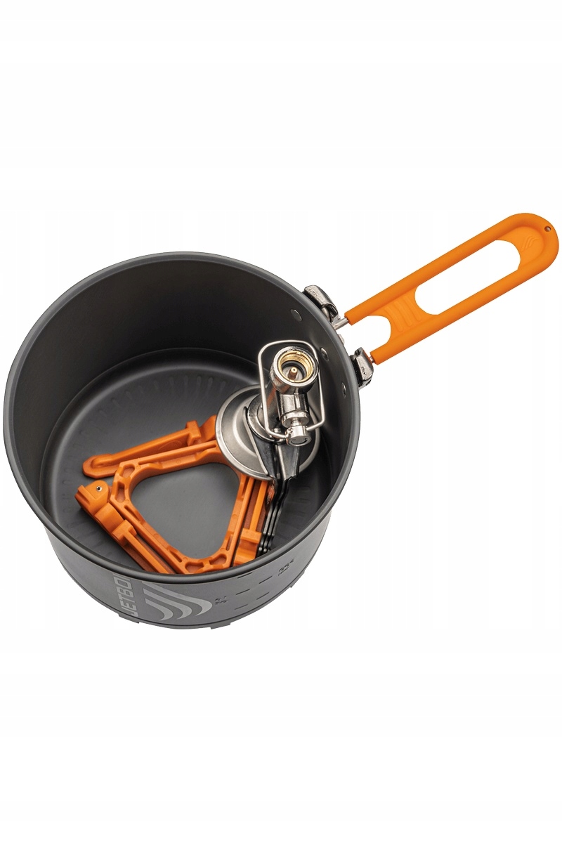В комплект Stash входит чрезвычайно прочная титановая горелка и кастрюля объемом 800 мл с радиатором. Вместе они создали самый легкий туристический комплект Jetboil, когда-либо созданный. Радиатор, спроектированный по технологии FluxRing, максимально использует энергию, вырабатываемую при сгорании топлива, что не только сокращает время приготовления, но и приводит к значительному снижению расхода газа. По сравнению с обычными плитами, тепловой КПД которых составляет 20-30%, Stash передает на посуду до 80%. Благодаря этому 0,5 литра воды закипает всего за 2,5 минуты. Дополнительно горшок оснащен прозрачной крышкой и удобной складной ручкой. В комплект также входит трехрожковая подставка для картриджа, гарантирующая устойчивость при приготовлении блюд.