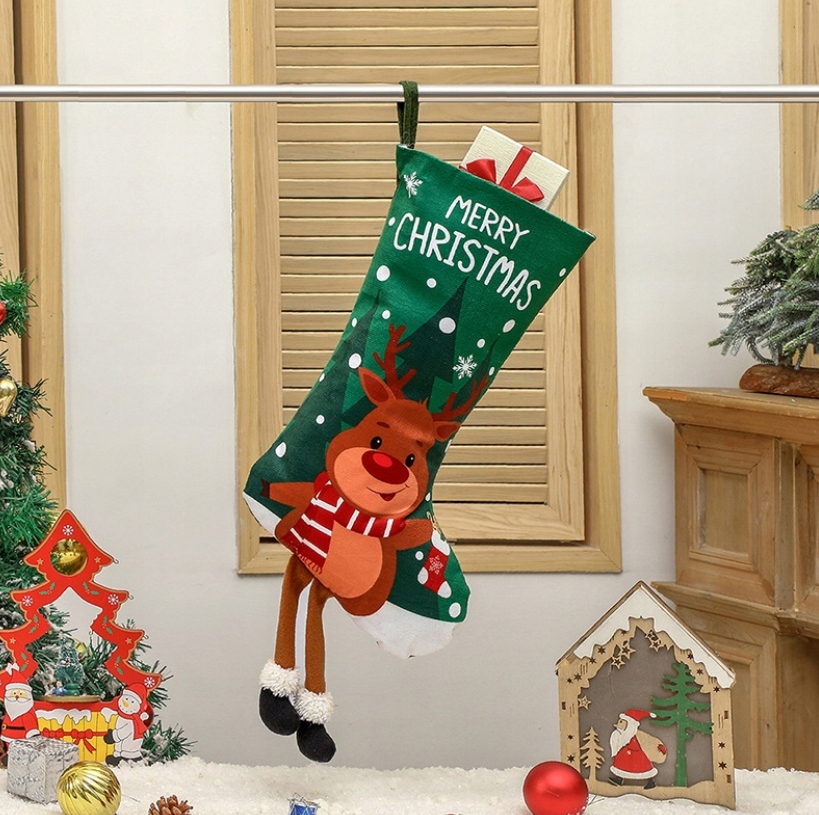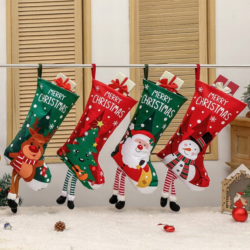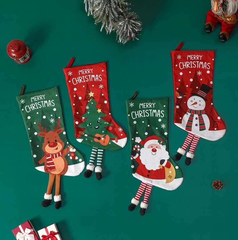 НОСОК ДЛЯ ПОДАРКОВ КАМИН РАЗНЫЕ УЗОРЫ САНТА-РОЖДЕСТВЕНСКИЙ 4ШТ
