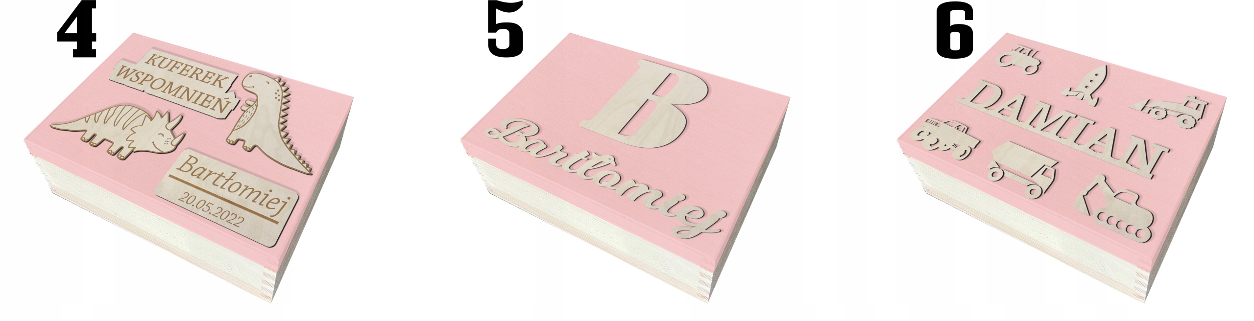1. Деревянная шкатулка с гравировкой, окрашенная в розовый цвет, с наклеенными деревянными элементами.