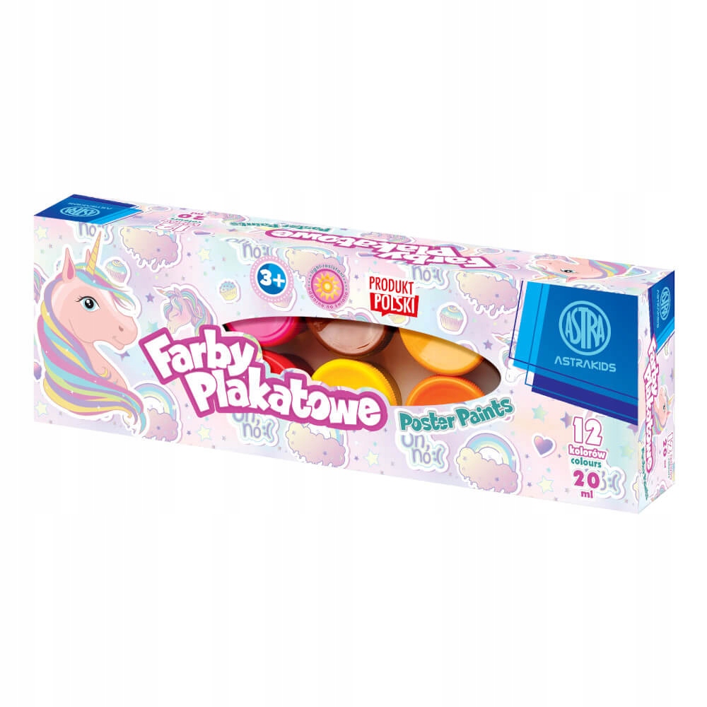 Краски для плакатов «Школа Единорог», 20 мл, 12 цветов